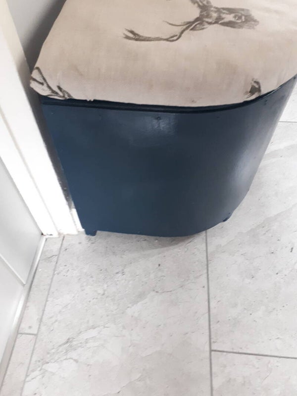 In need of some upcycling to bring back to it former glory. IE Replace or cover top of cushioned seat, re paint, repair or replace damaged base. See photos to make your own assessment of condition.