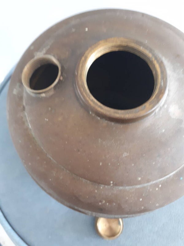 Bought from local auction never fired up so sold as untested, but all relevant parts seem to be there. Is missing its shade but has the funnel. Both wick wheels move but are a little stiff. There are signs of Verdigris deposits on various parts of the lamp. I personally like its old patina, but if you want it for home decoration the brass could be cleaned to bring back to it former glory. See photos to make your own assessment of condition.