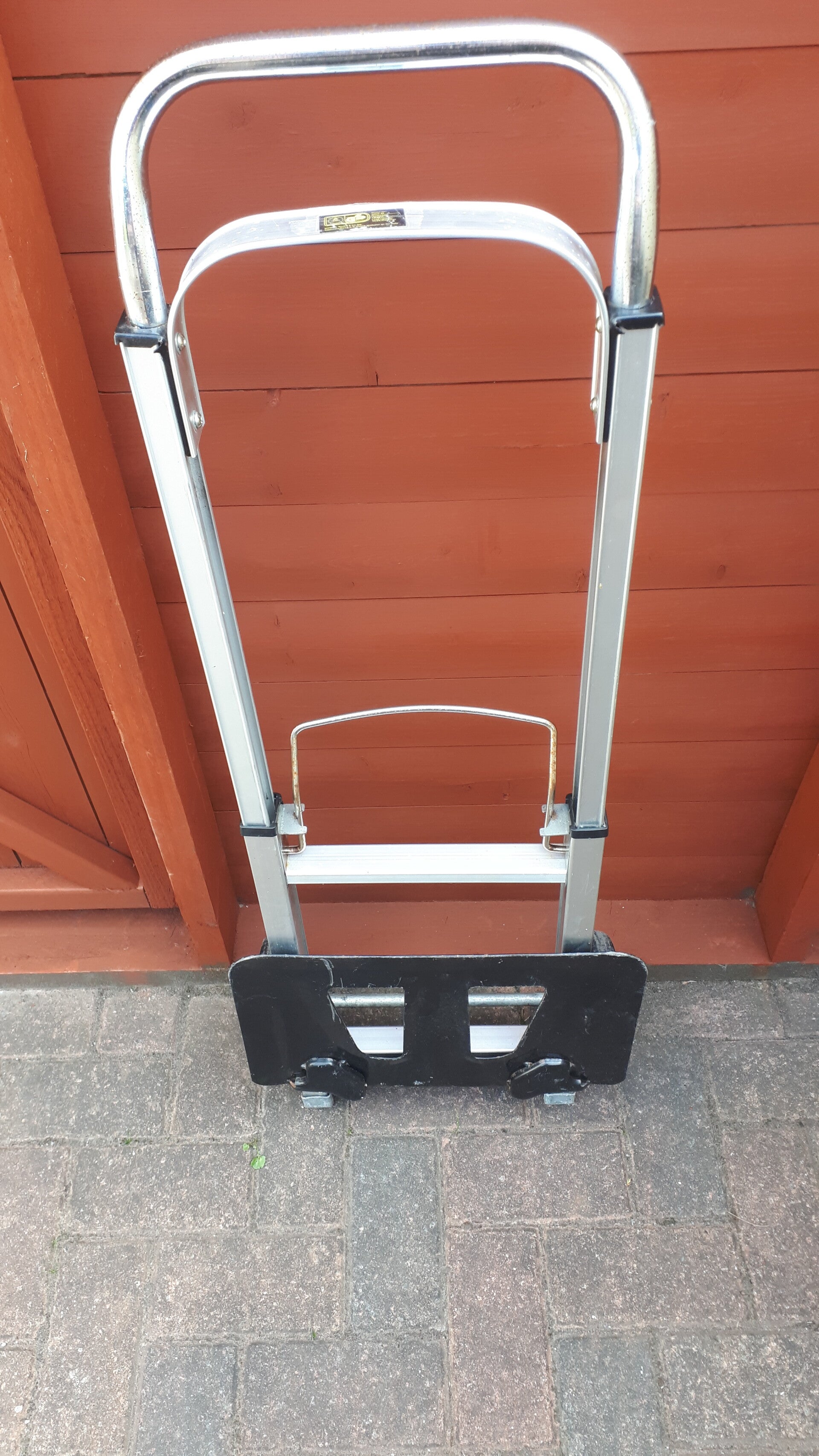 Faulty mechanism stuck in working position unable to drop it to a store position. Can still be used though for moving items around. Does have minor spots of rust. See photos to make your own assessment of condition