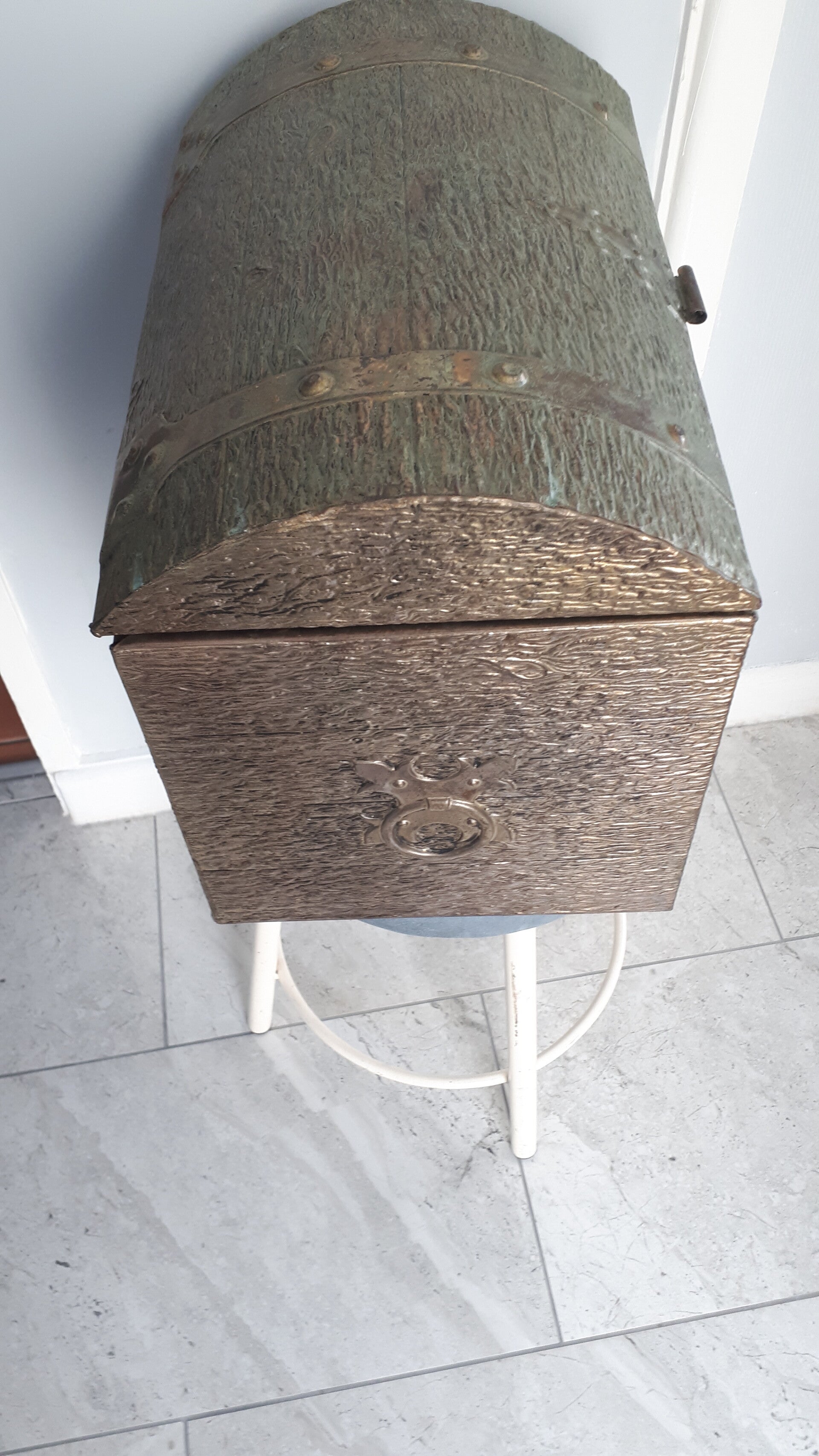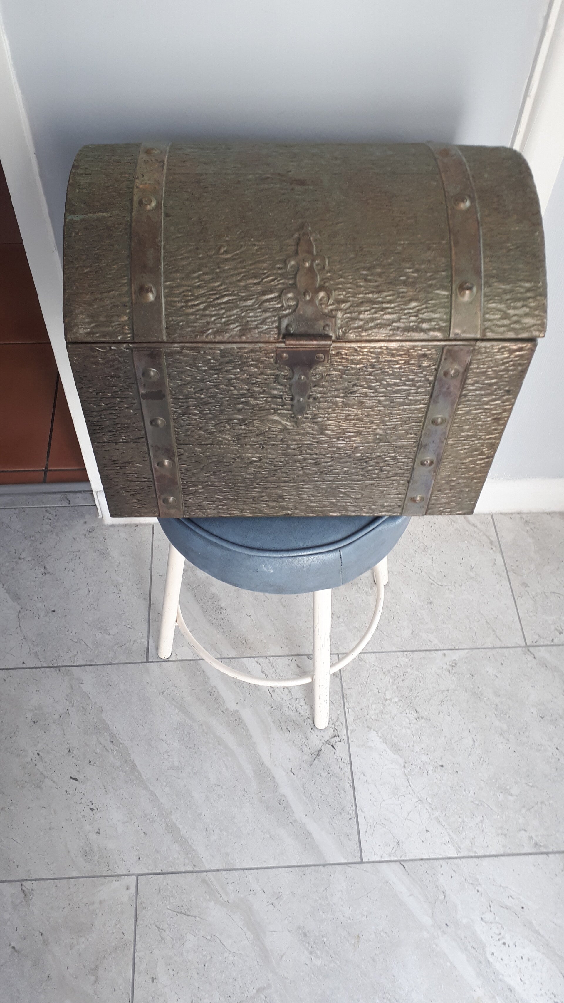 Super chest made out to look like a pirates treasure chest. Can be used as a prop,decorative or functional, has Immitation handles and no locking function. In good used condition with some rust in the base easy to rub off and re paint with hammerite. See photos to make your own assessment of condition.