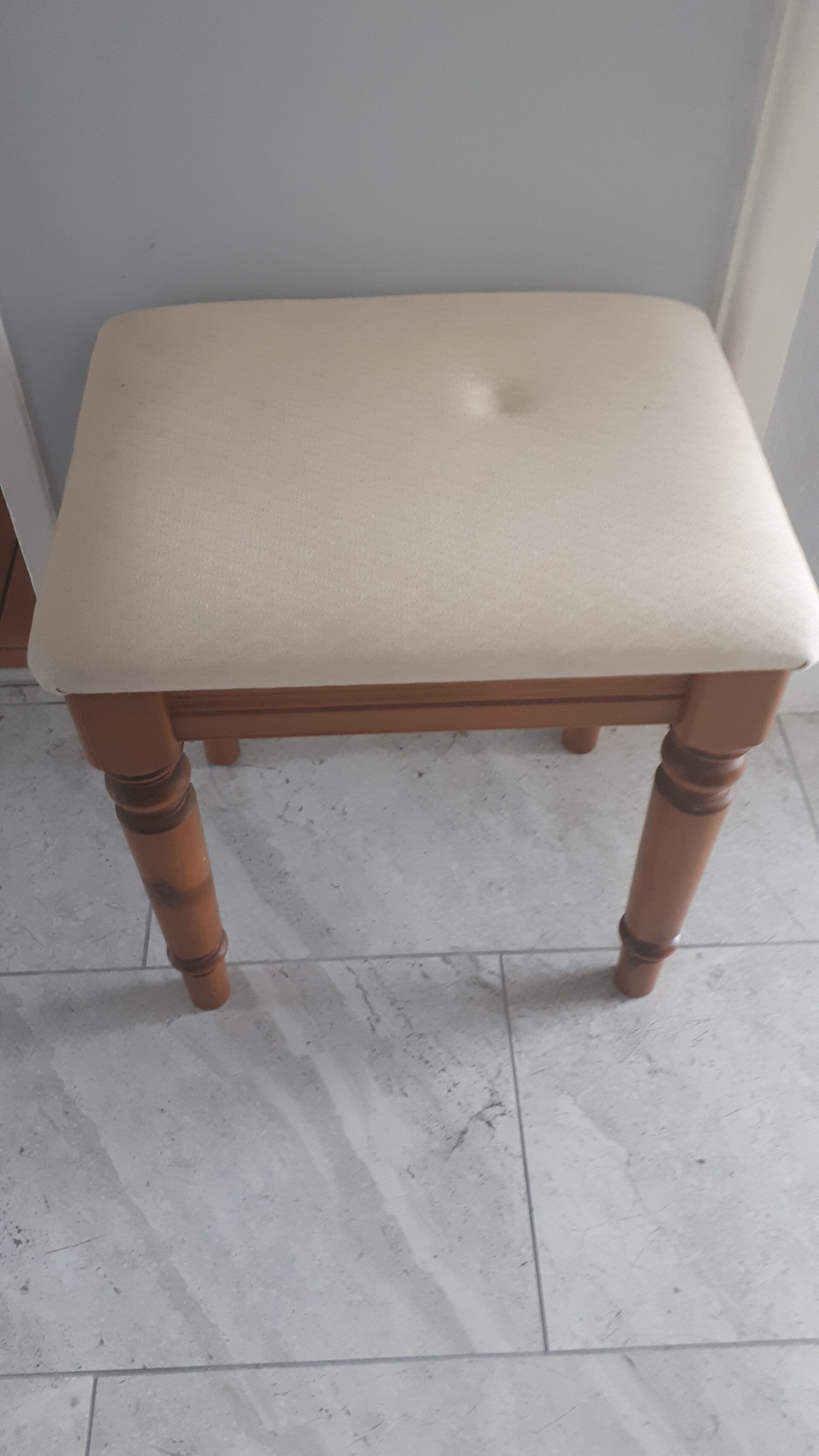 Clean, tidy and comfortable wooden stool in good used condition with some minor marks and a indent on the cushion seat. See photos to make your own assessment of condition