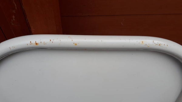 Very nice chairs ideal for your garden. In used condition with some minor scratches and rust spots. Sturdy chairs with wide comfortable seats, easy to store away when not in use. See photos to make your own assessment of condition.