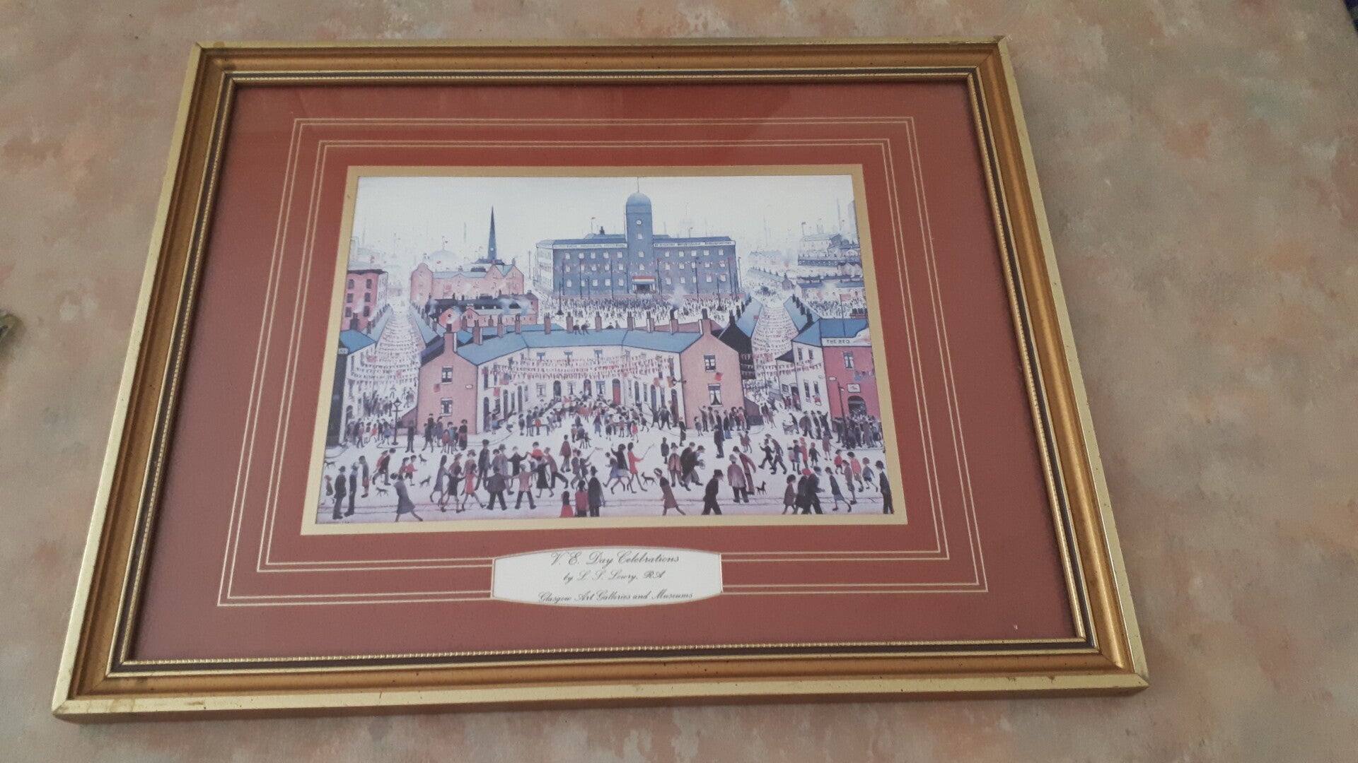 SOLD SOLD L.S.Lowry Framed Picture of V.E Day Celebration. UK POSTAGE ONLY