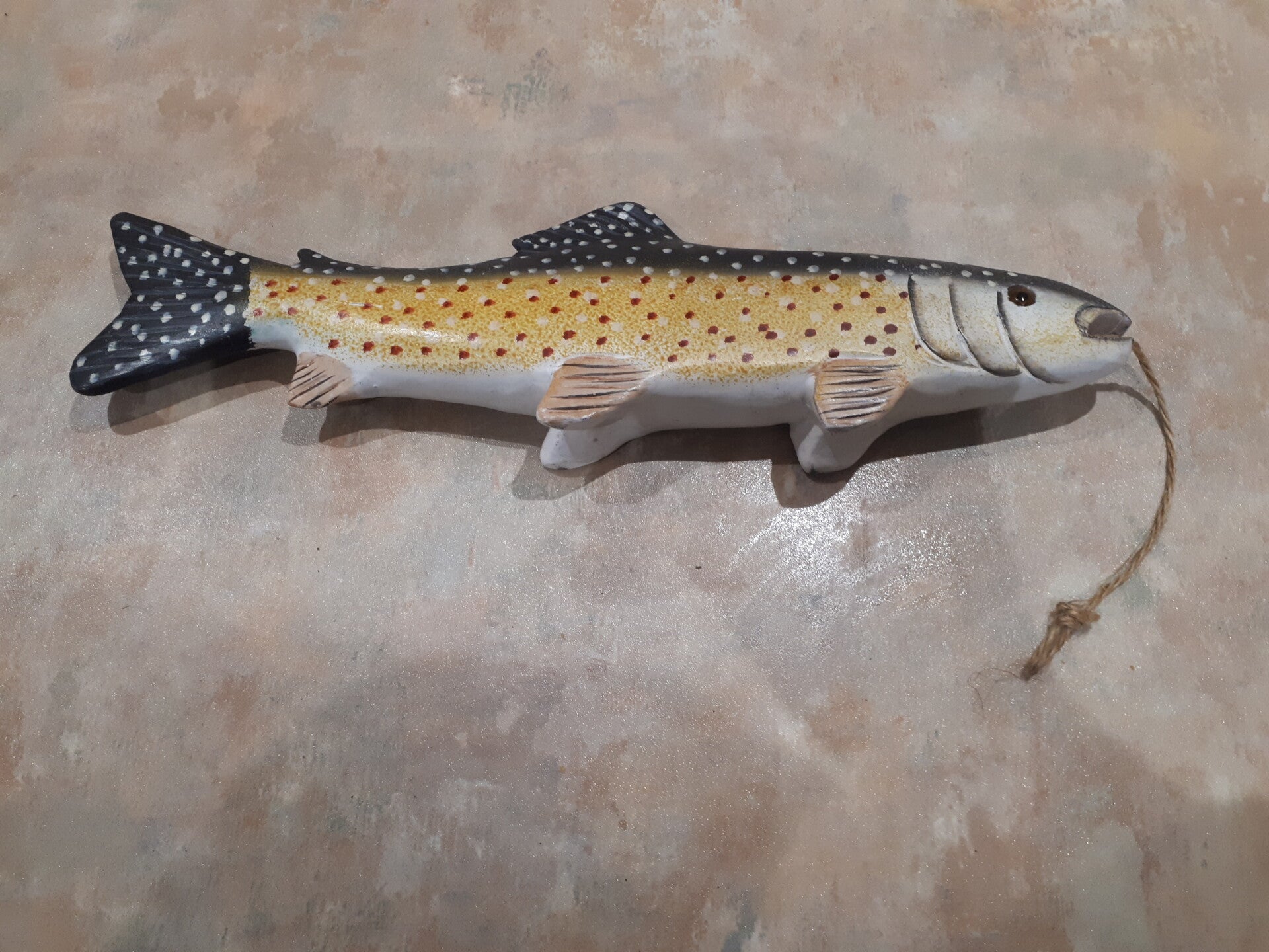 Very colourful wall hanging l fish, could be a trout ? but not 100% sure. In very good used condition, see photos for your assessment of condition .
