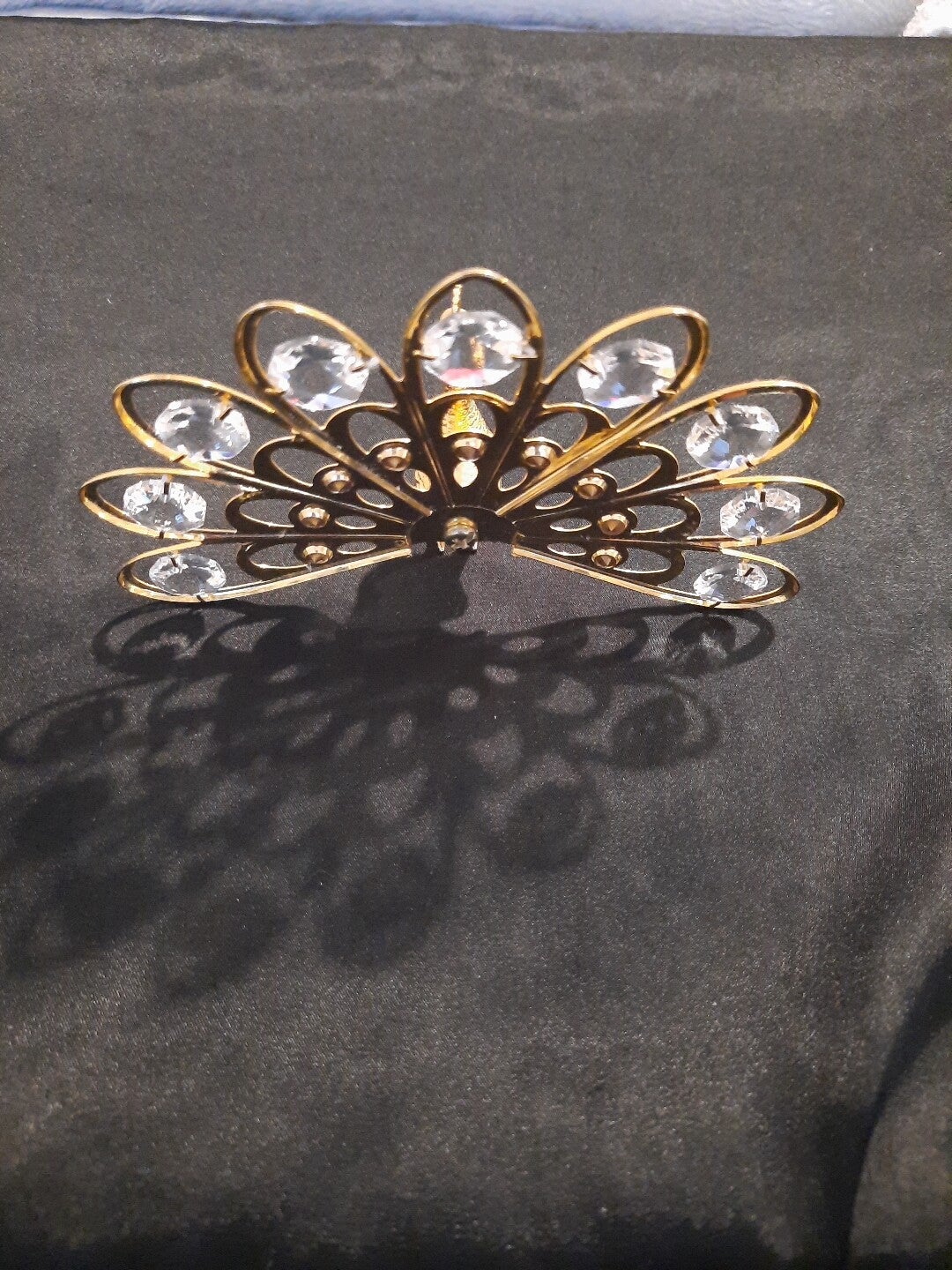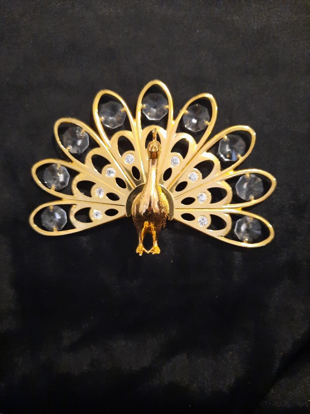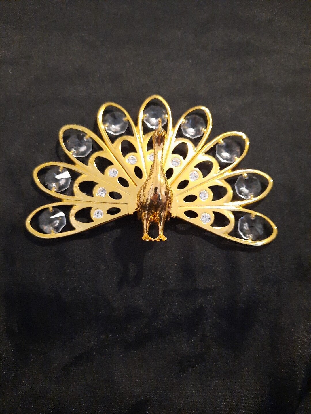 This is a gorgeous Peacock by Crystal Temptations. It has 9 medium crystals and 9 larger crystals . I believe it is 24k gold plated though I don't have the tag . Its a gorgeous piece and will look amazing in any room with abit of light. Have a look at the pictures, then take it home!!!🙂🙂🙂🙂🙂UK POSTAGE ONLY!!!
