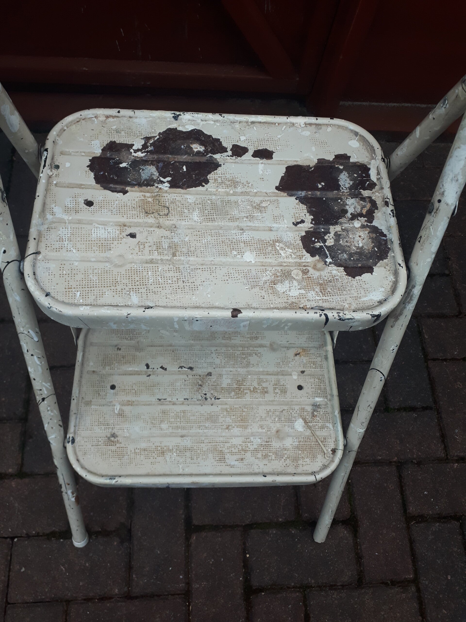 Two steps ladder in well used condition and showing signs of wear but still fully functional. Foldable for easy storage See photos to make your own assessment of condition.