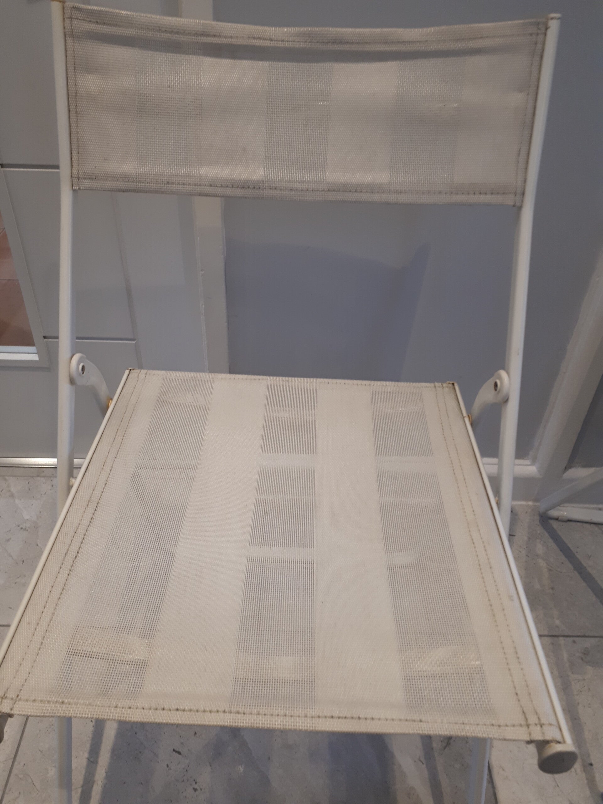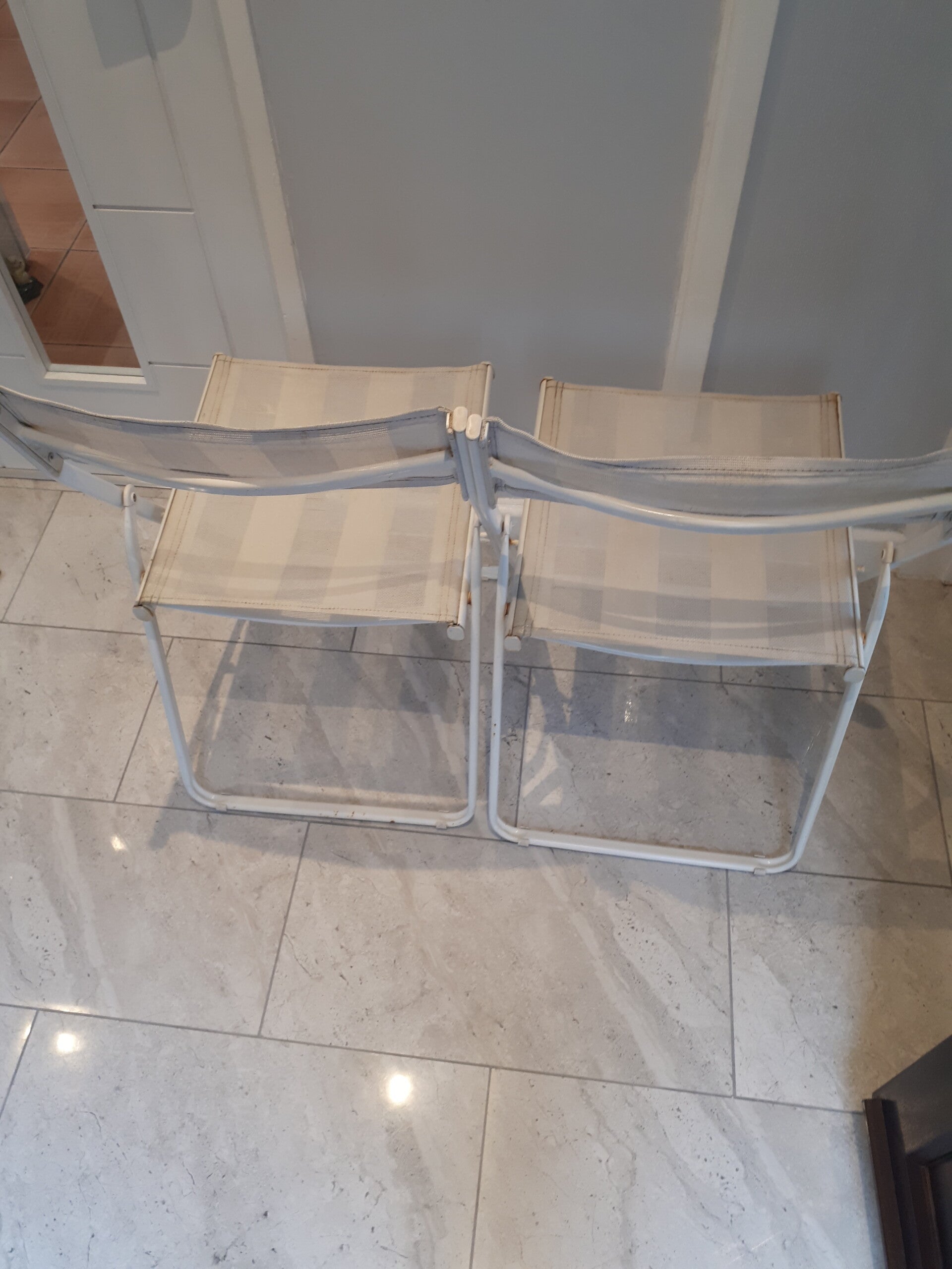 Two foldable metal canvas garden chairs Collection only Caerleon nr Newport Gwent