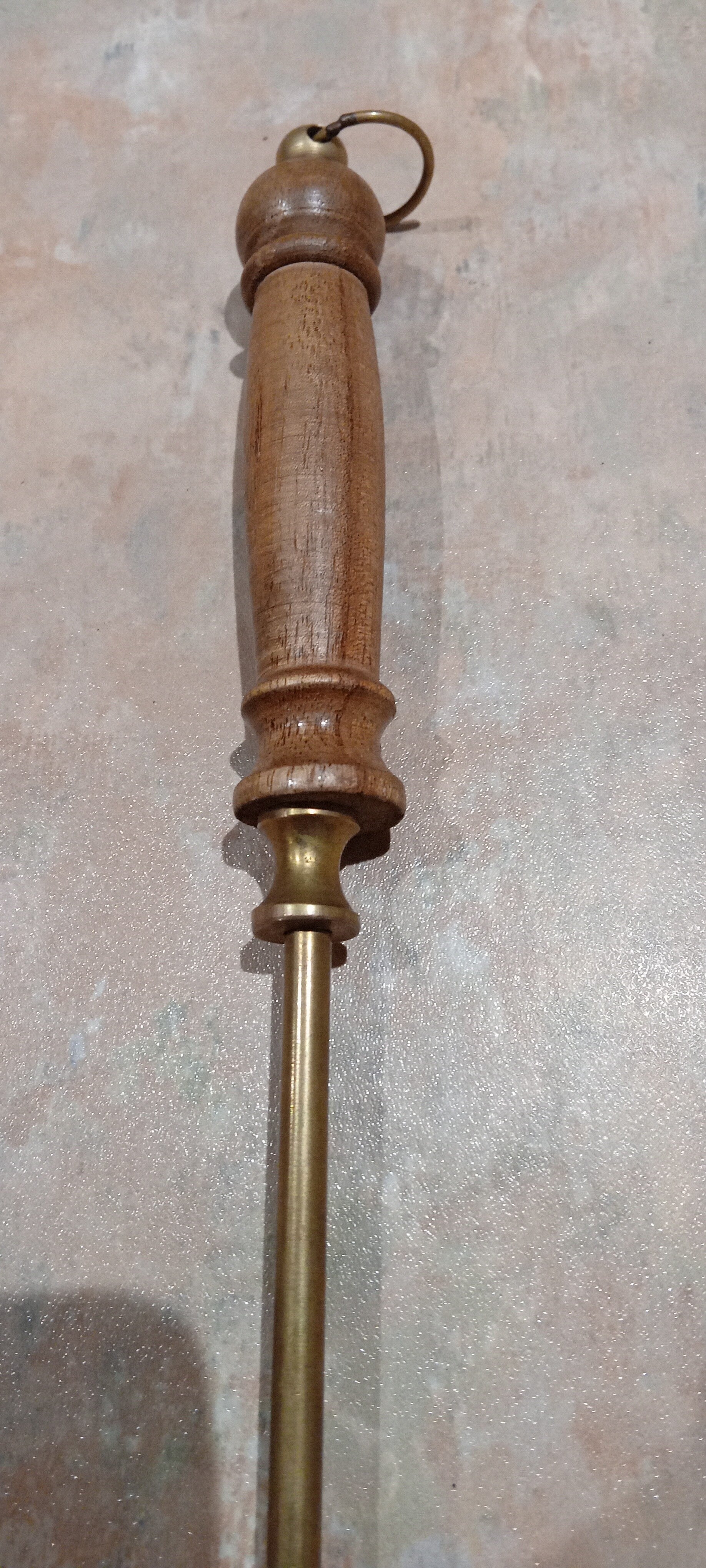 Comes with hanging eye, in good used condition but does have some brass oxidation on it. When posting to reduce postal charge I will unscrew wooden handle. See photos to make your own assessment of condition.