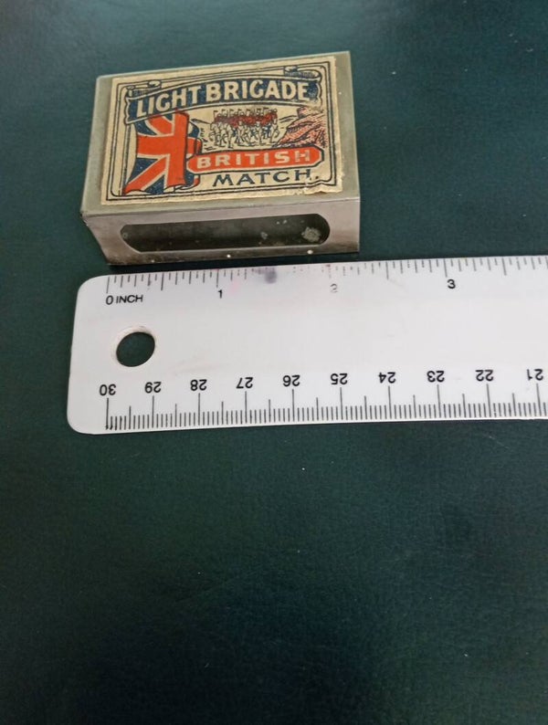 - Super Collectable metal match box holder with colourful picture "Light Brigade British Match" In used condition with some wear consistent to its age and use. See photos to make your own assessment of condition. Please NOTE does NOT come with matches.