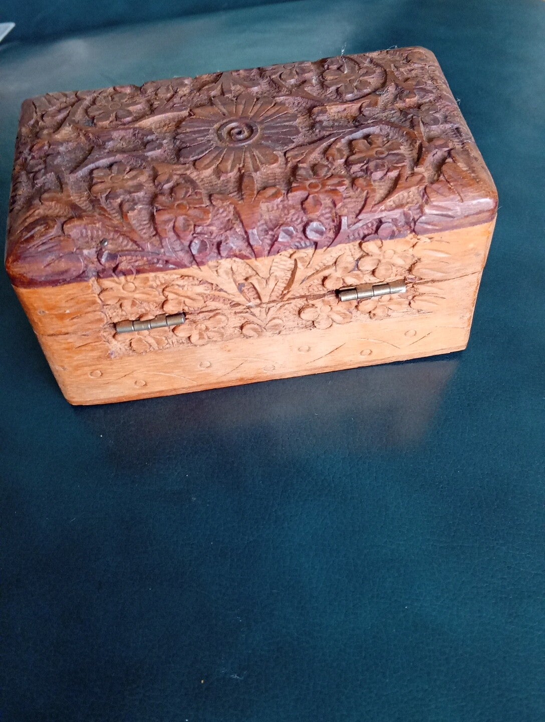 Lovely wooden box ideal to hold all your little treasures in. In good used condition with some minor wear consistent to its age and use. See photos to make your own assessment of condition.