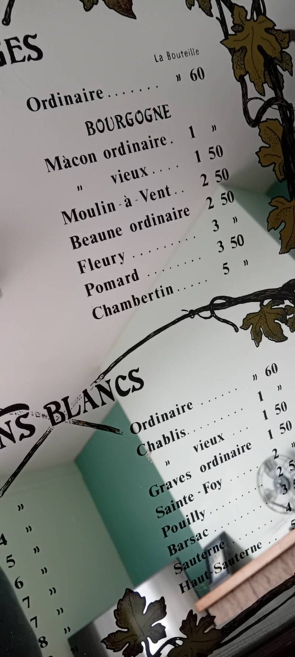 Carte Des Vins Mirror With Wooden Frame and French Advertising. Collection Only.