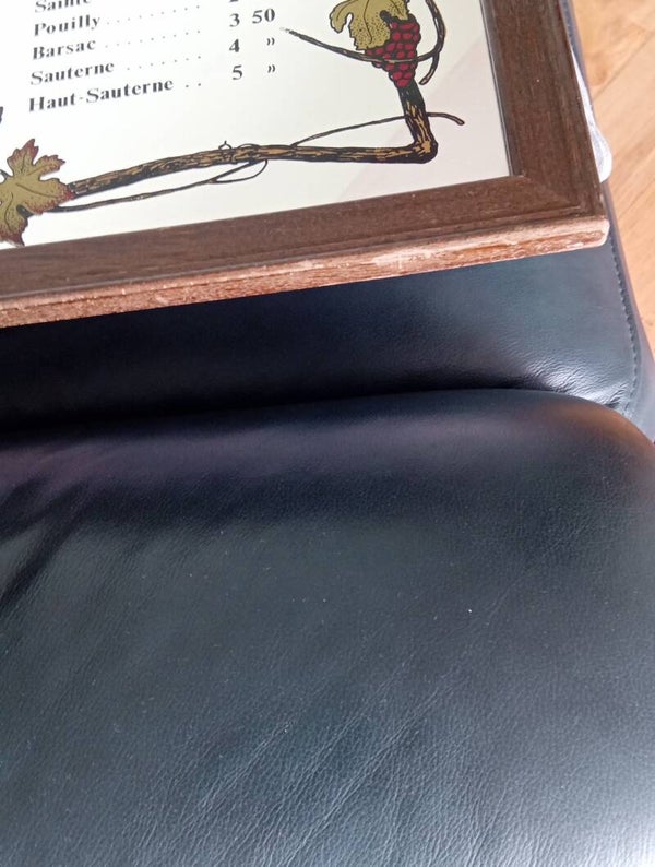 This carte Des Vins Mirror is a must-have for any wine collection or for a practical use. The advertising mirror has a strong wooden frame encasing it. The mirror is in good used condition but the wood frame does have some wood scrapes. See photos to make your own assessment of condition.