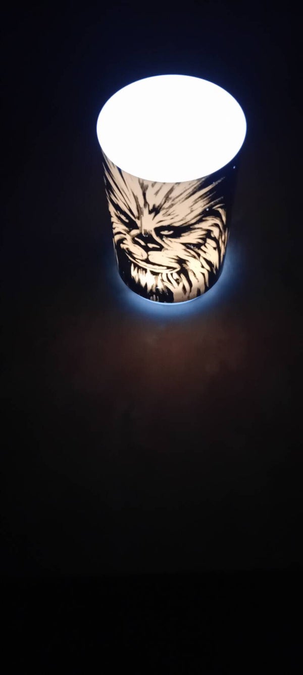 Super Collectable working night light. Press the top light comes on and Chewbacca shreiks out. In good used condition with minor scratches from use. See photos to make your own assessment of condition.