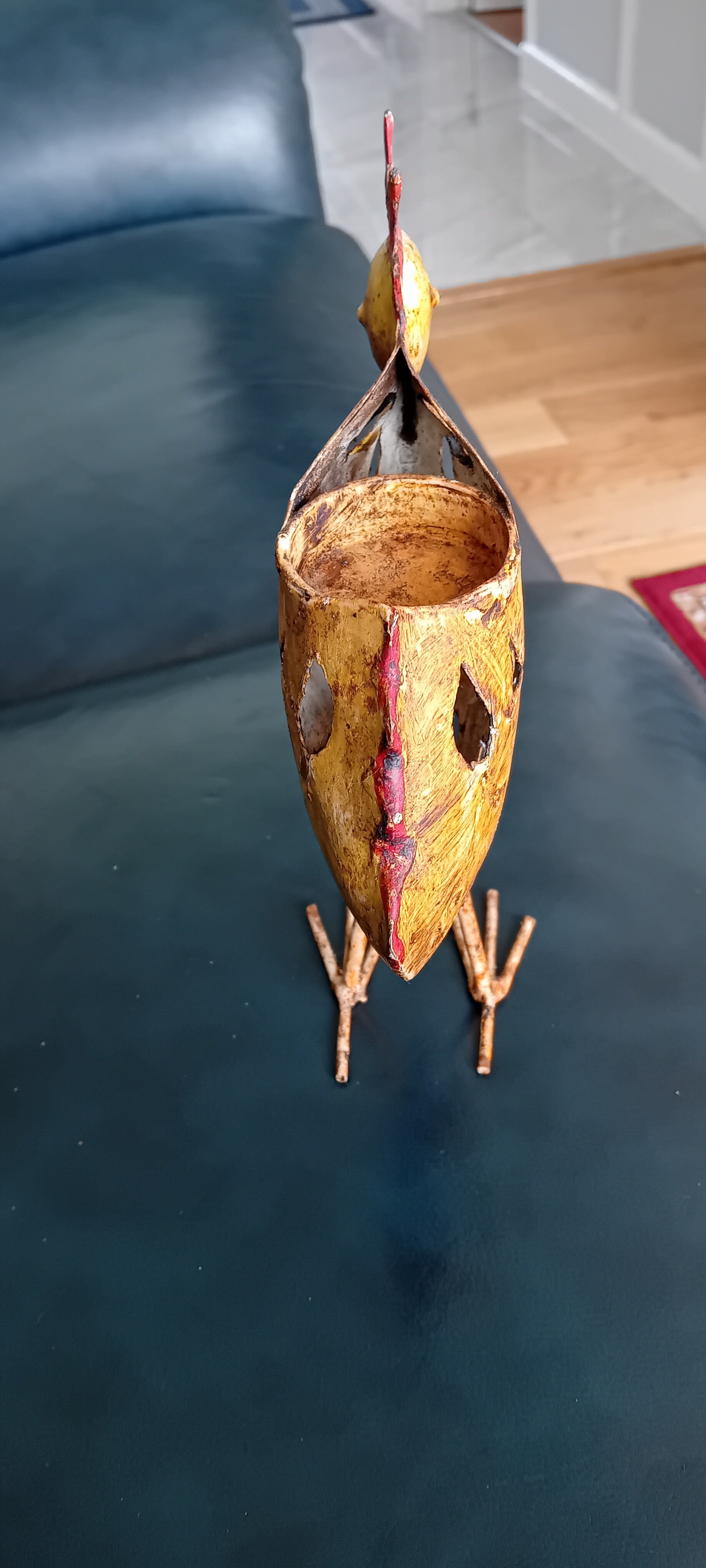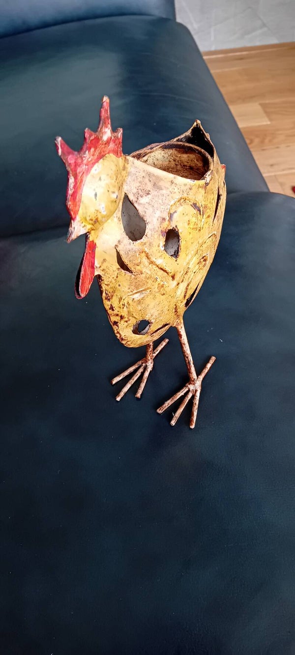 SOLD SOLD PENDING Rustic metal cockerel like candle holder. Uk Postage Only.