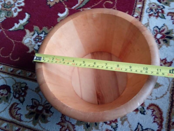 Super large wooden bowl, with some wear consistent to its age and use. See photos to make your own assessment of condition.
