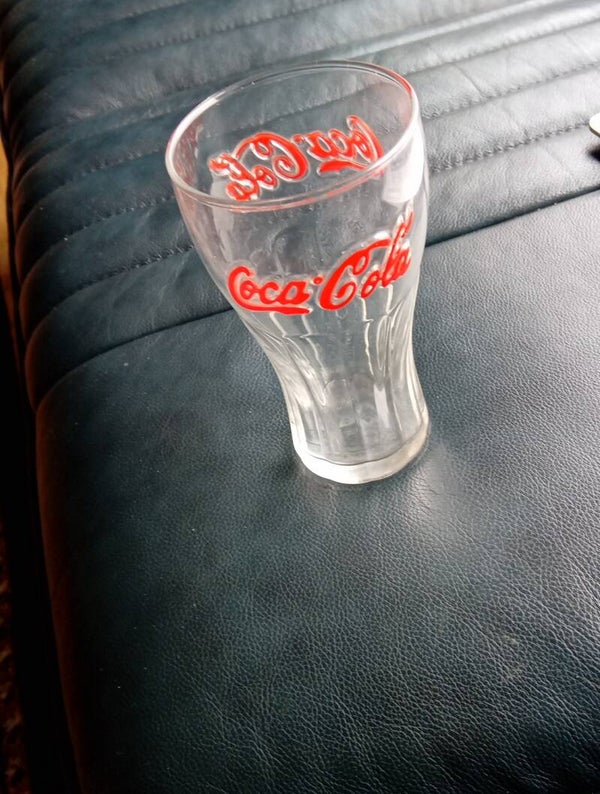 Collectable Coca Cola glass with embossed with vivid red advertising name. Uk Postage Only