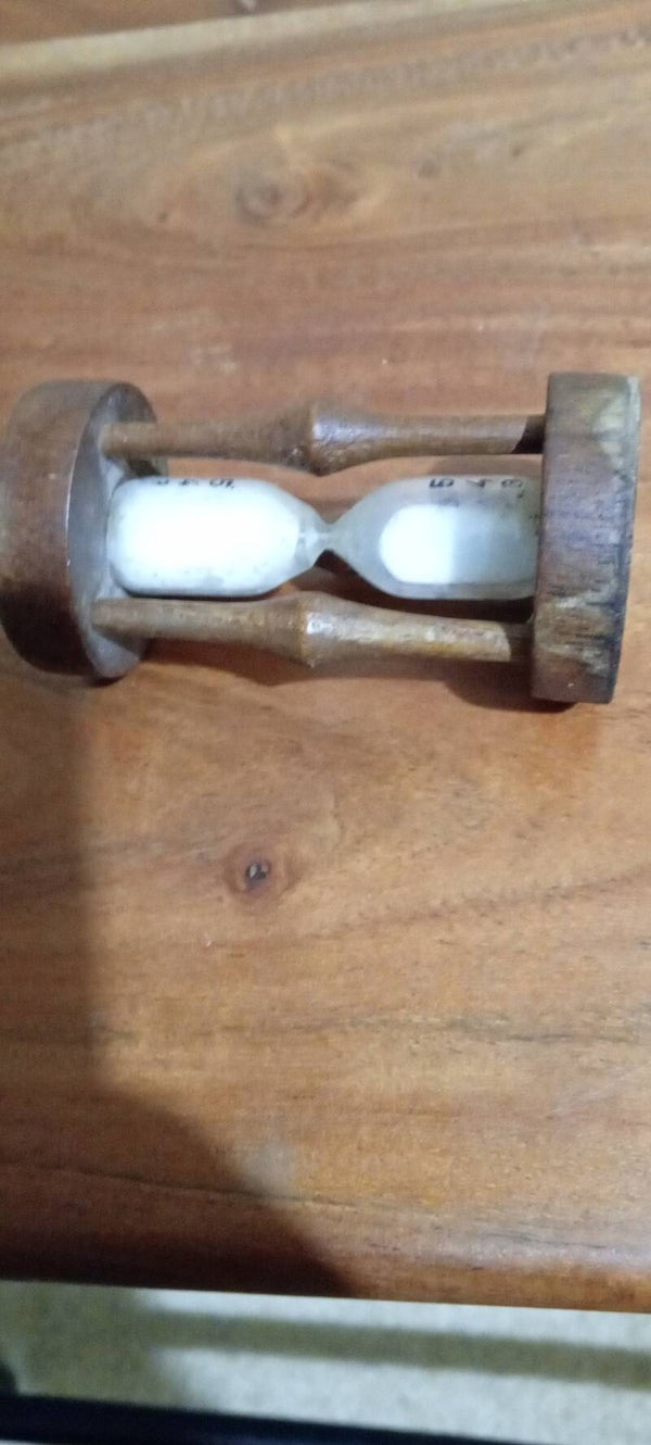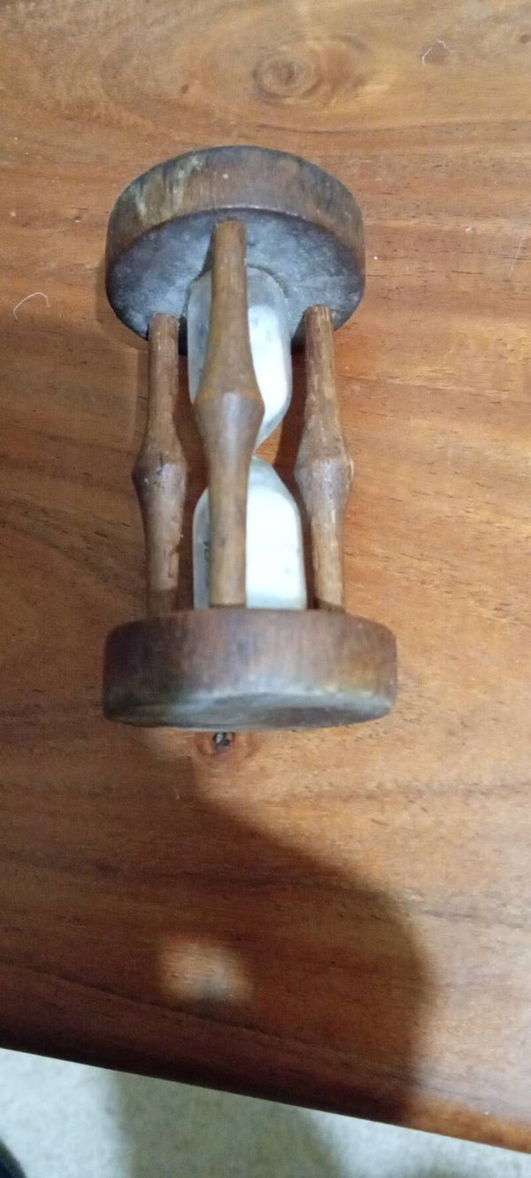 Vintage egg timer in full working order with some minor wear to the wood consistent to its age and use. See photos to make your own assessment of condition .