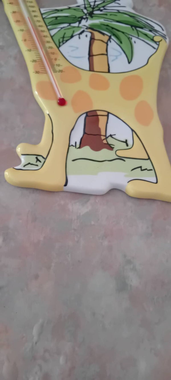 The thermometers is integrated into the giraffe elongated kneck. The giraffe thermometer is a sought-after collectors item due to its limited production and the unique fussion of Lennons artwork with Coalport renowned porcelain craftsmanship. In New condition, see photos to make your own assessment