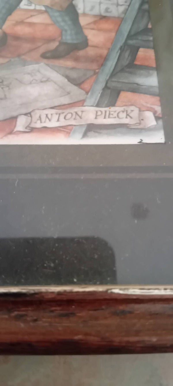 This print by Anton Pieck captures the essence of a traditional print shop. This print has a wooden frame and hanging eye. In good used condition. See photos to make your own assessment of condition.