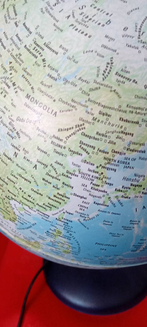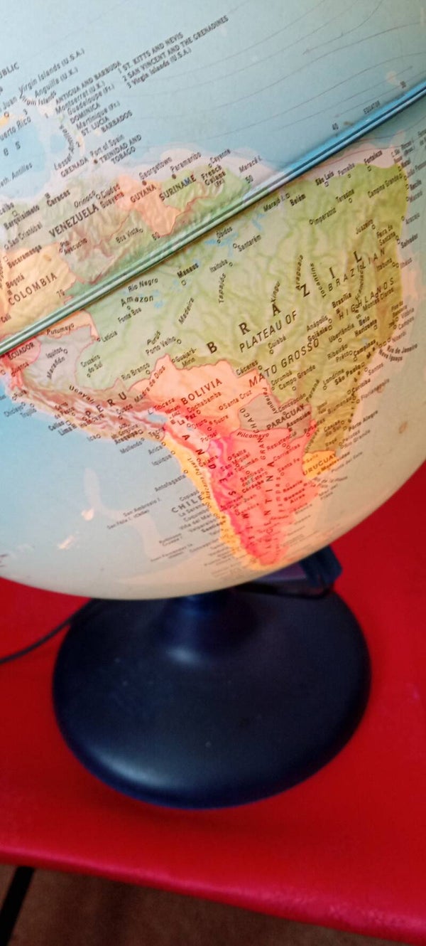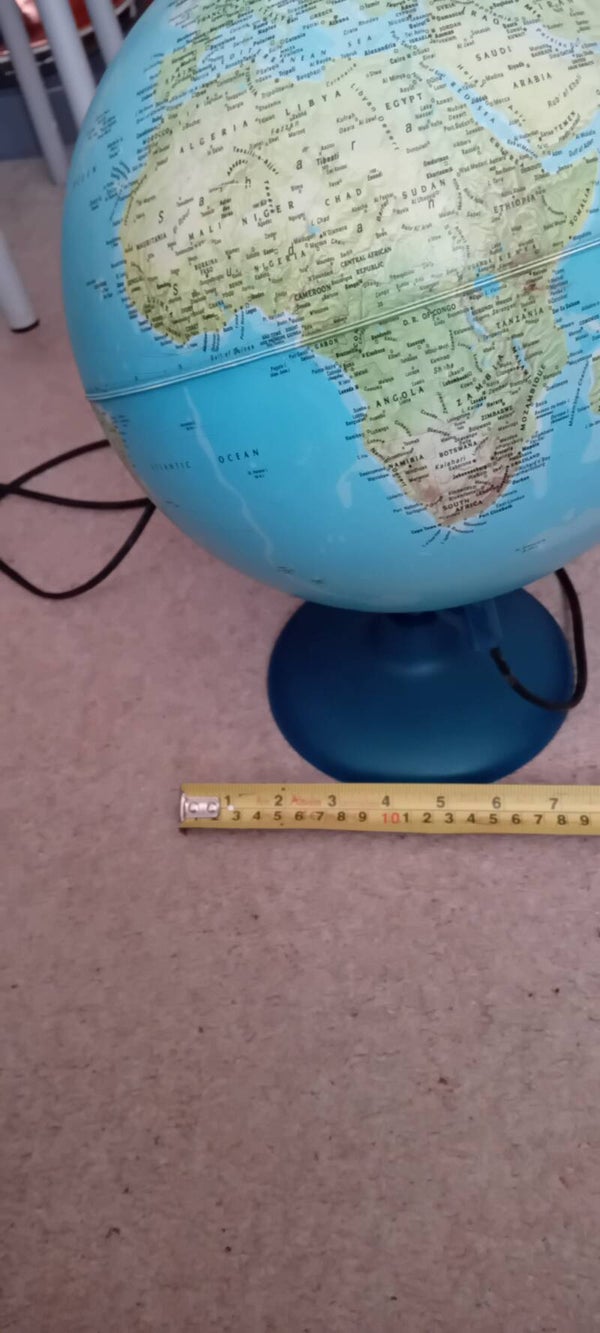 Super world globe with illumination light. Generally the plastic globe is in good used condition, but there is some wear of the plastic covering. See photos to make your own assessment of condition.