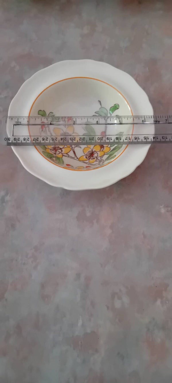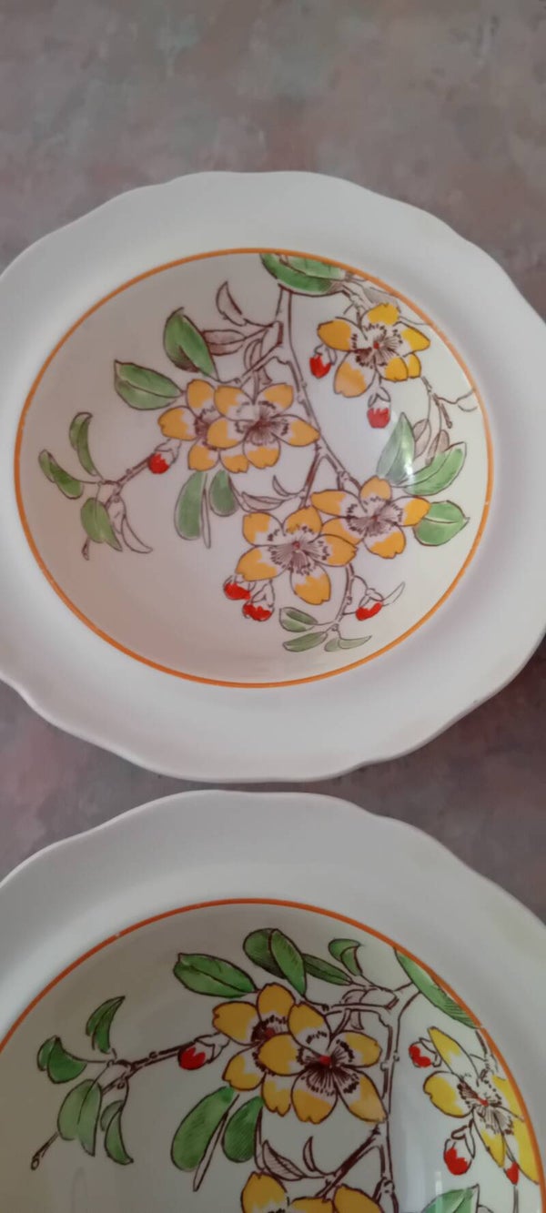 Highly collectable vintage Royal Doulton bowls. After completing some extensive research I was able to ascertain these bowls were manufactured approximately between 1934 -1936. Please do your own research on the above dates before purchasing. In good used condition with some minor wear chips especially on the base. One of bowls has what appears to be a small manufacturing blemish/chip on the top of bowl. Another interesting point is that two bowls have all painted leaves the other two bowls have one leaf unpainted. Interesting, has this been done on purpose by Royal Doulton? See photos to make your own assessment of condition.