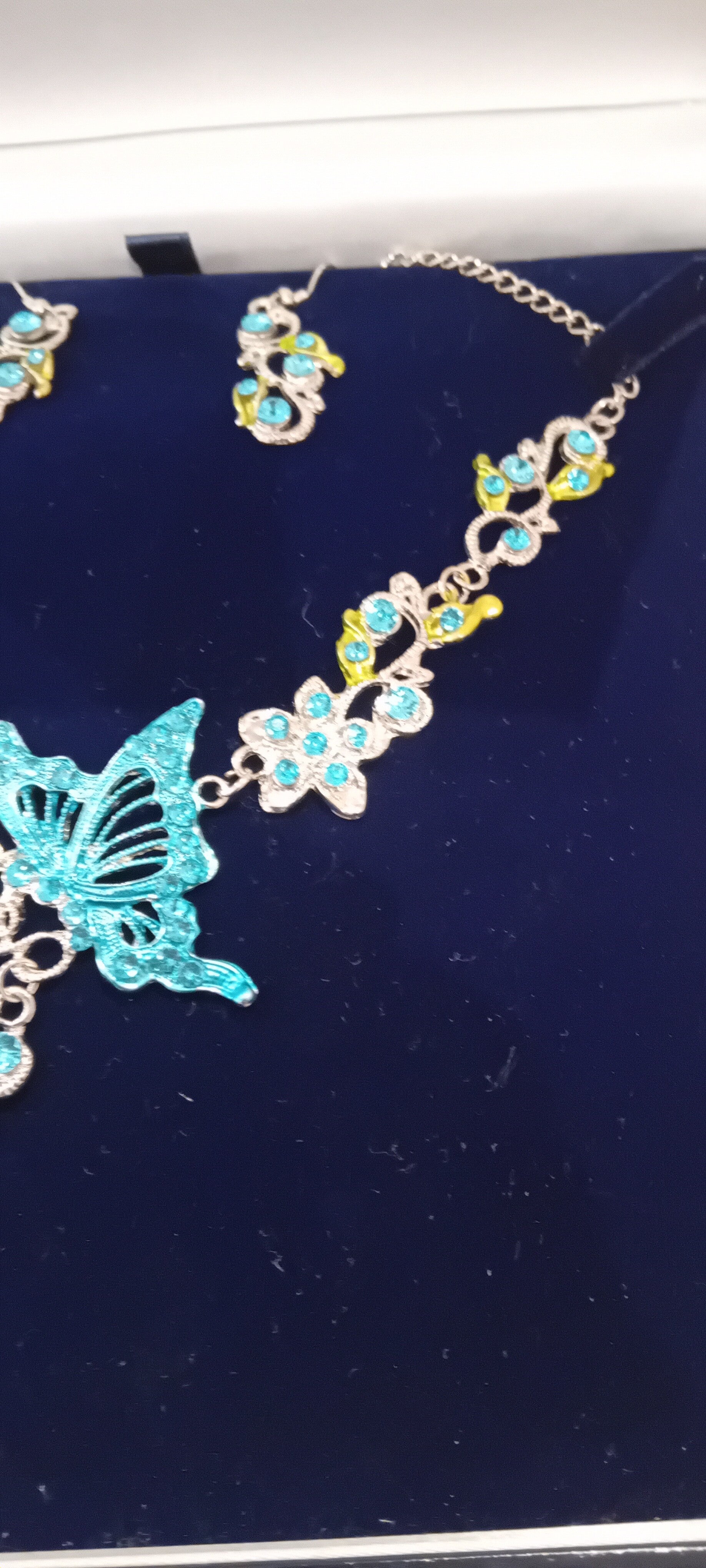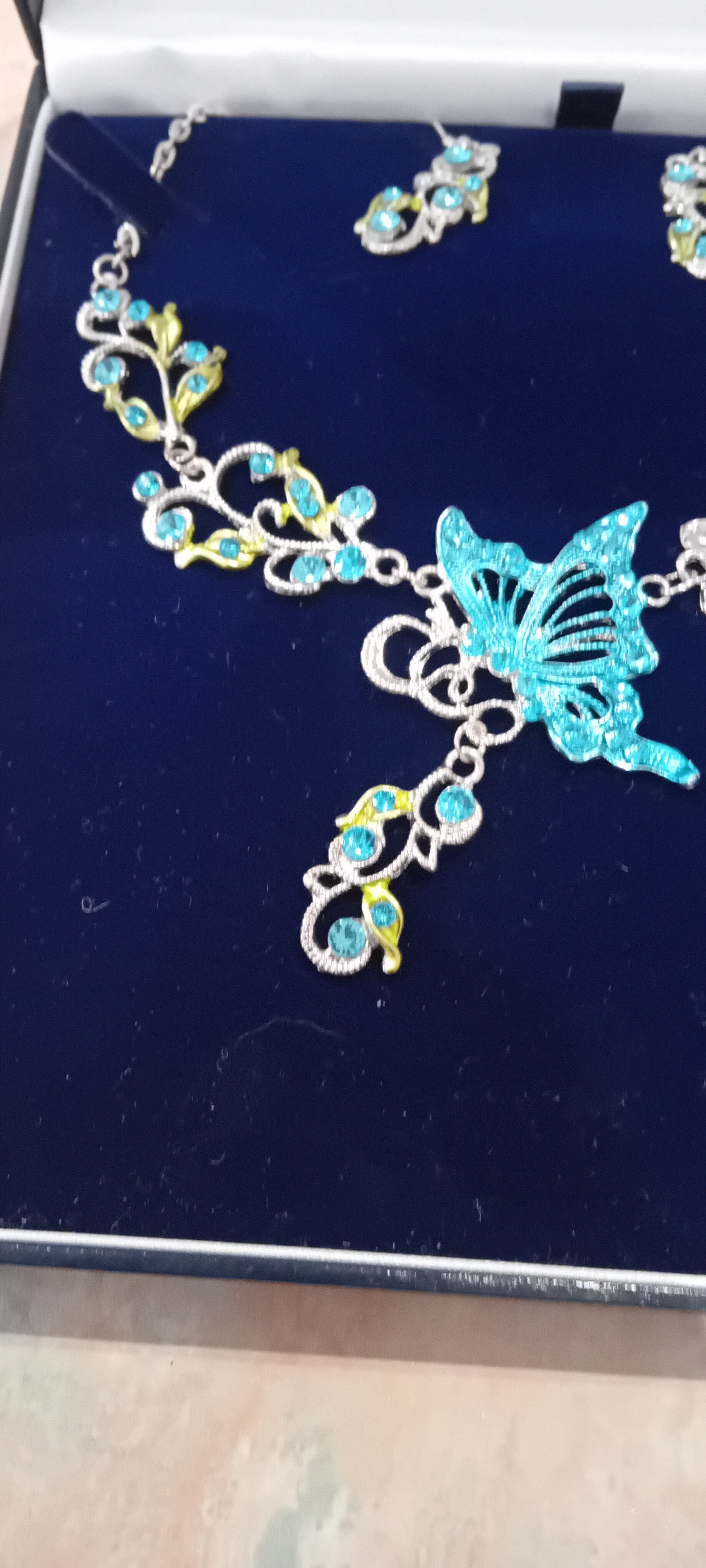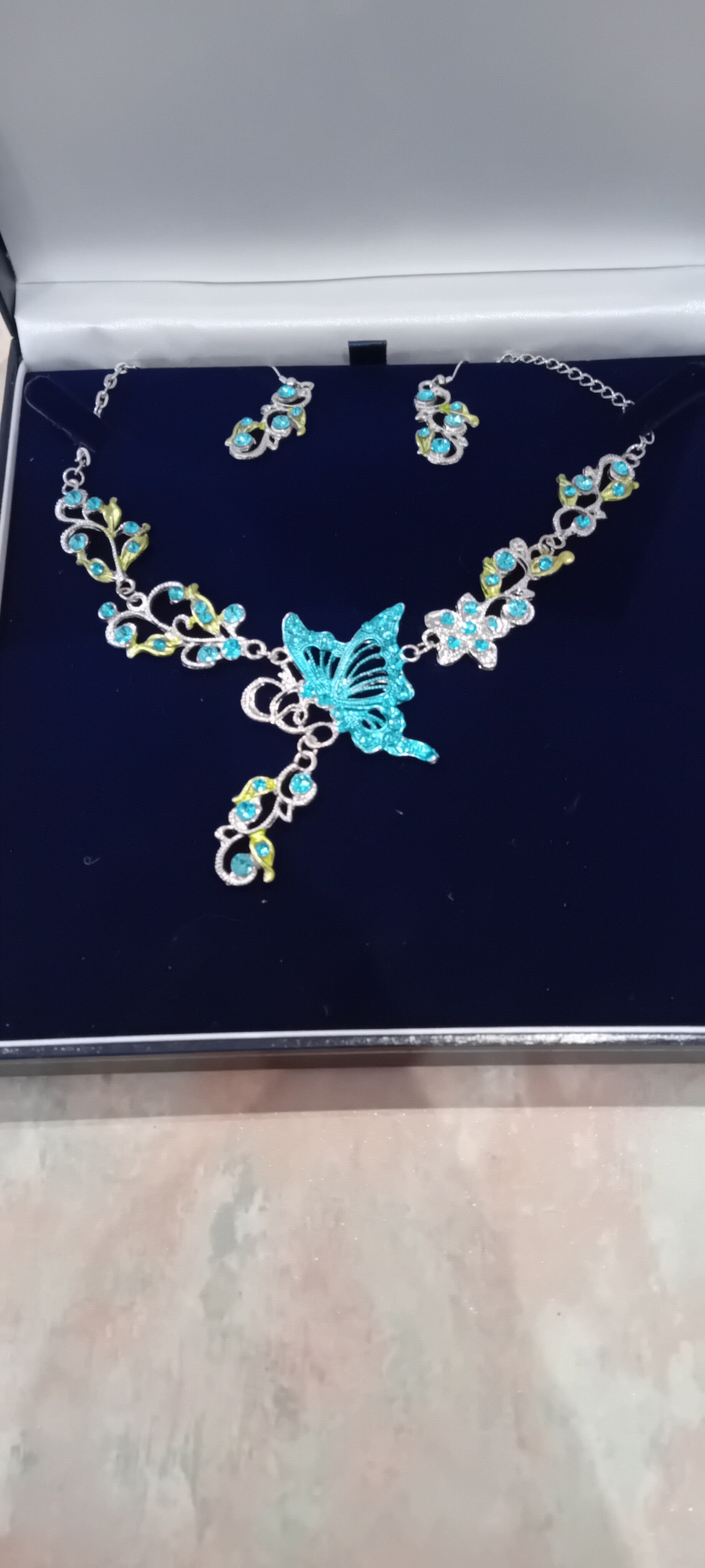 Stunning jewellery set in very good used condition . The display box has minor wear from shelf life. See photos to make your own assessment of condition.