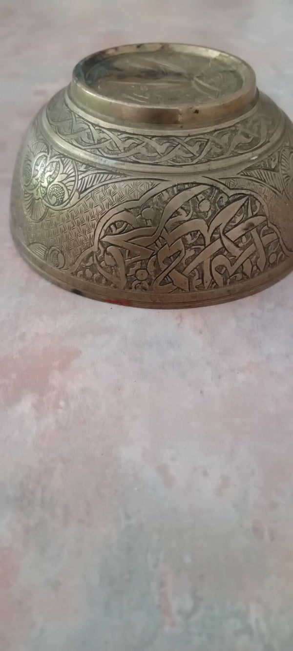 Small brass bowl with ornate design around it. Uk Postage Only