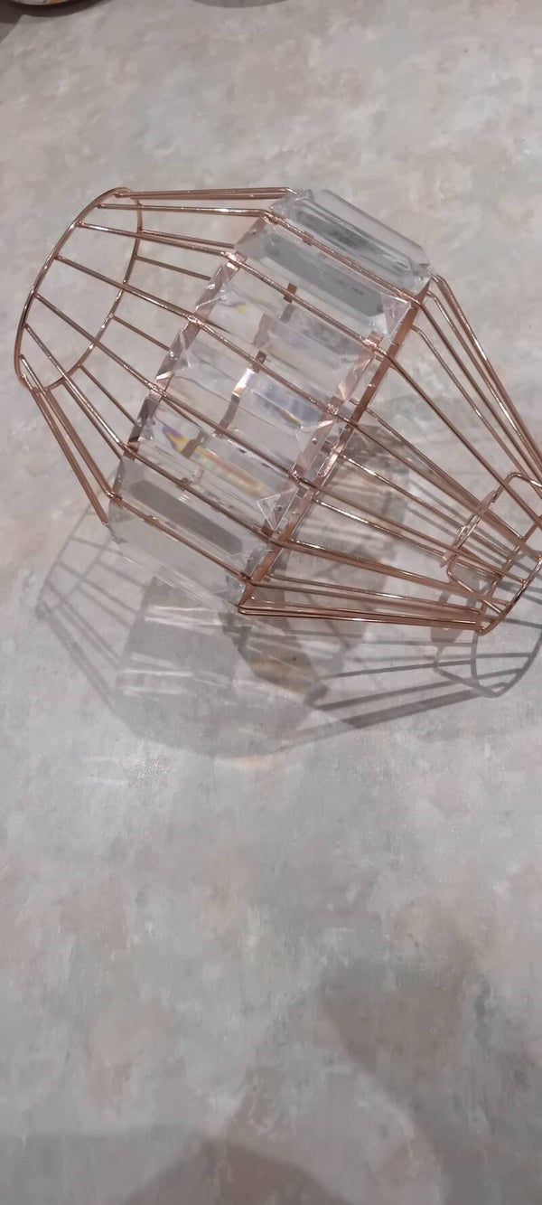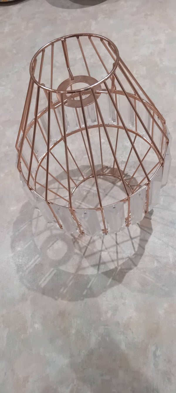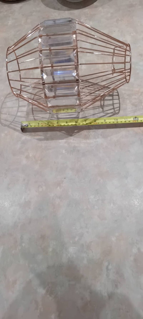Absolutely stunning ceiling light shade, unfortunately the photos do not show how attractive this light shade is and definitely would enhance any home decor. The light shade has a central band of rectangle perspex like decorative clear pieces that diffuses the light. In good used condition with some minor wear from age and use. See photos to make your own assessment of condition.