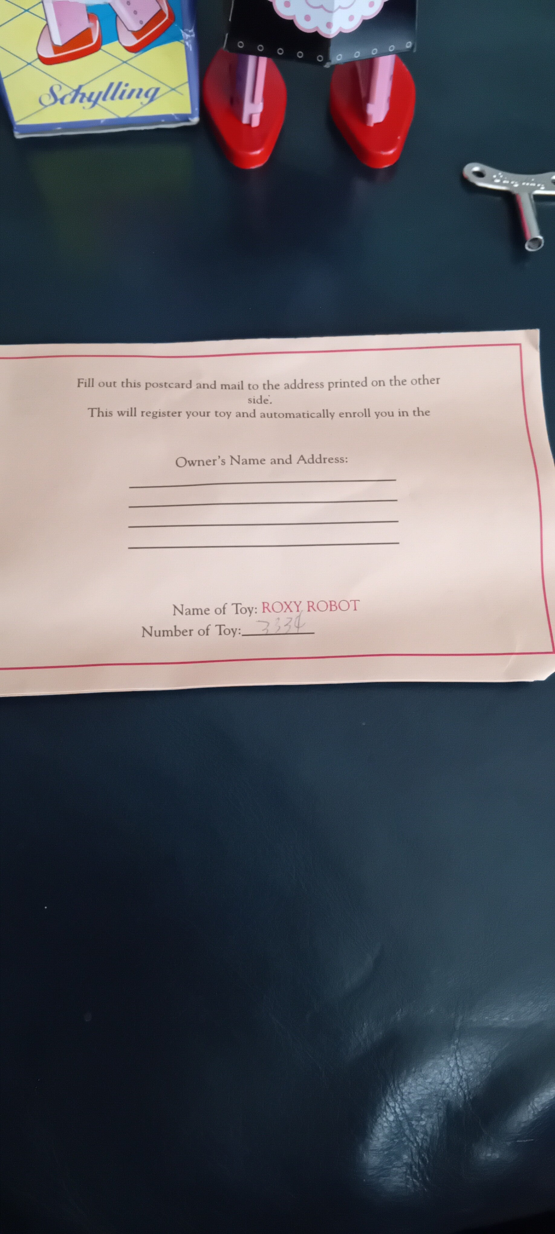 Collectable Schylling Mechanical Wind Up ROXY ROBOT with Certificste of Authenticity. Uk Postage Only