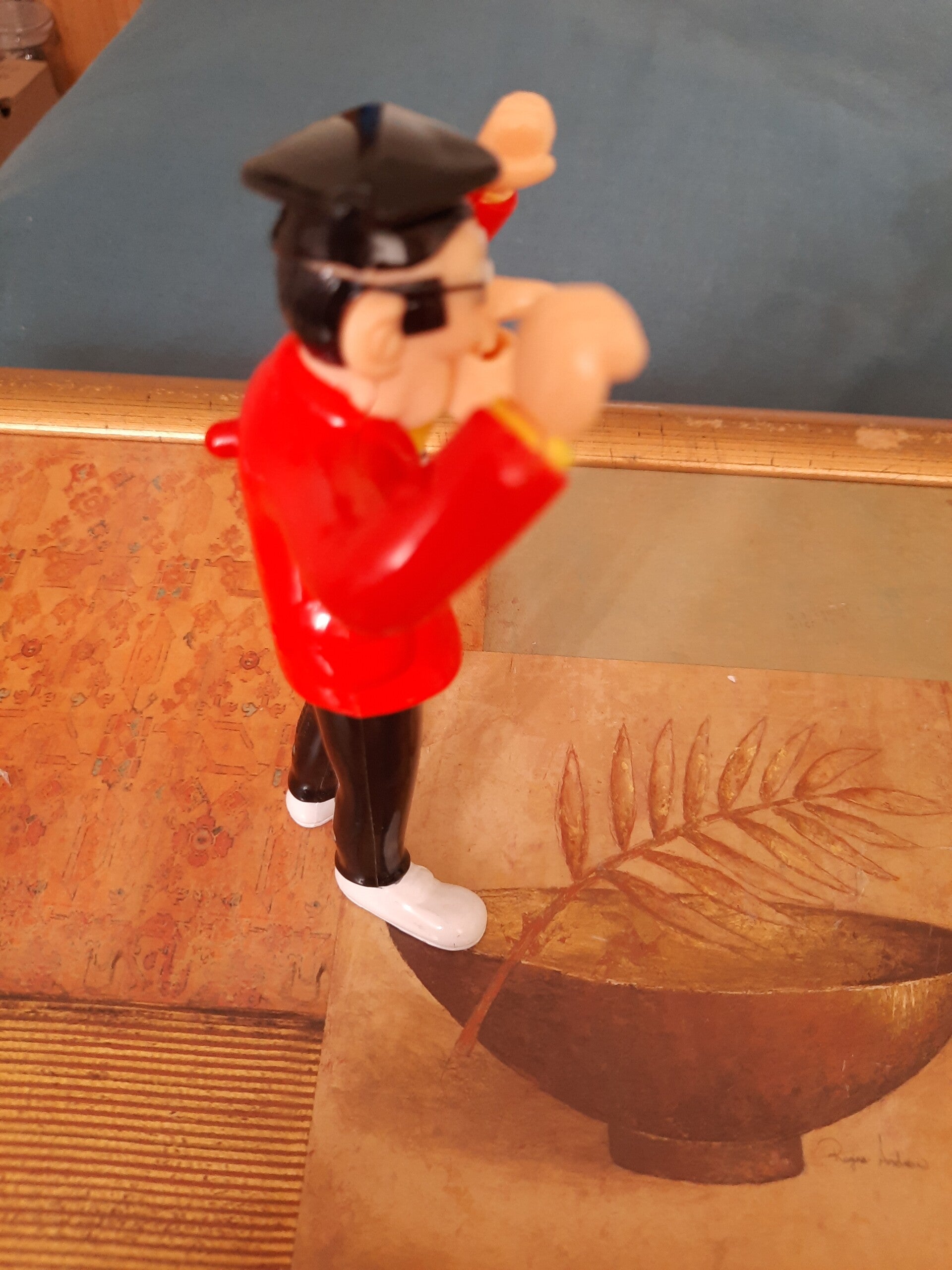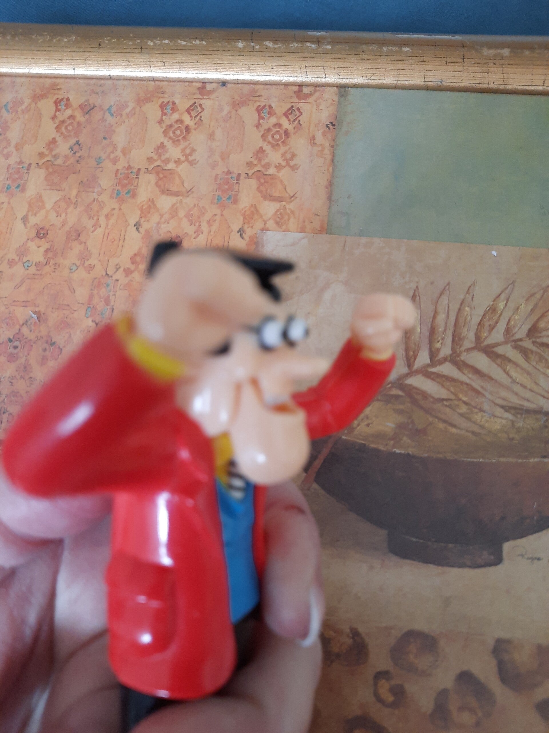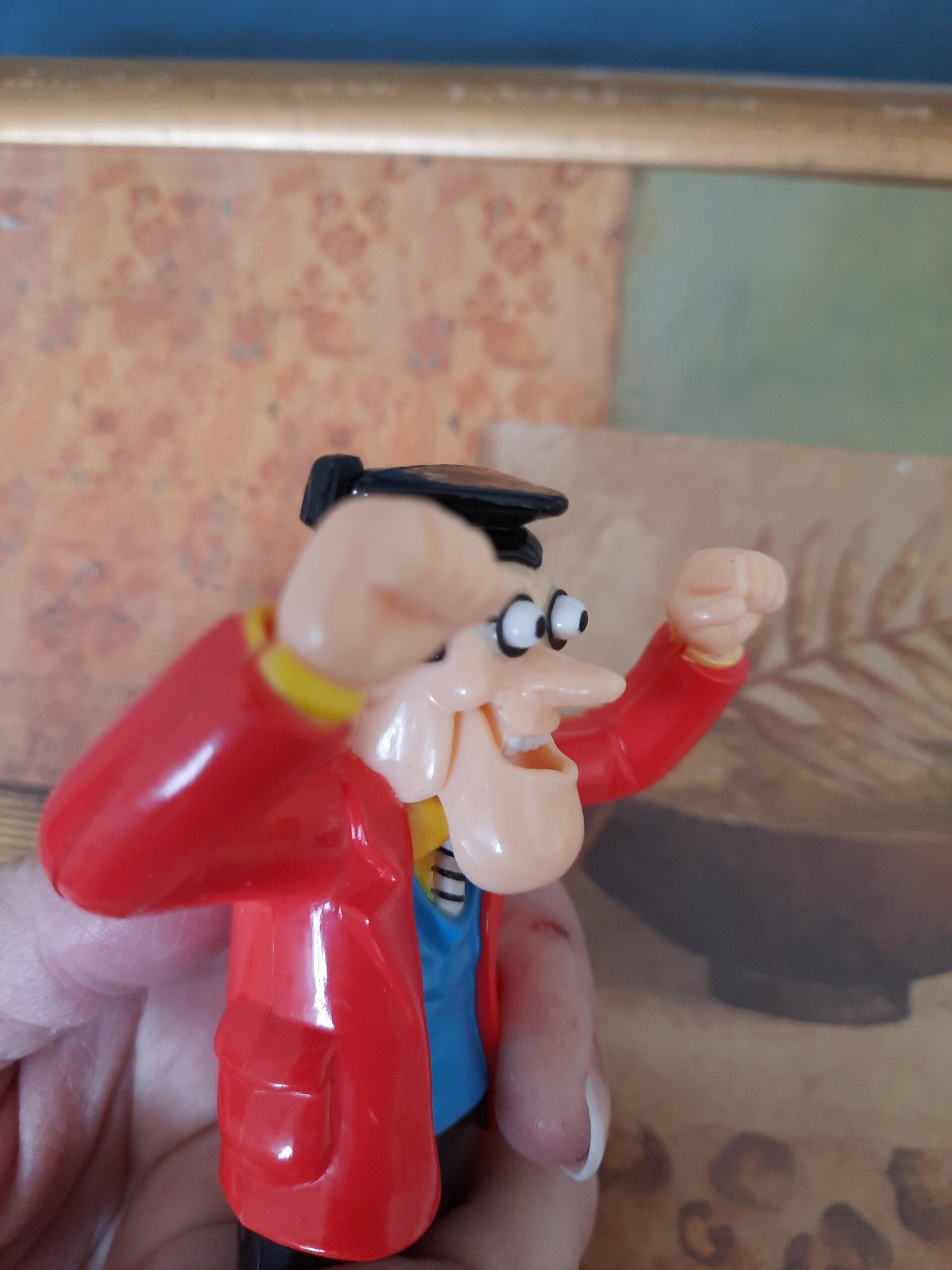 Beano Dennis The Menace Teacher HappyMeal Toy 2000 . Doesn't have its original bag it came in . It's in very good used condition. The button on the back still works well making his eyes bulge out and mouth drop. Very very cute toy . Collectable!!! Have a look at the pictures above , then take it home !!!🙂🙂🙂🙂🙂