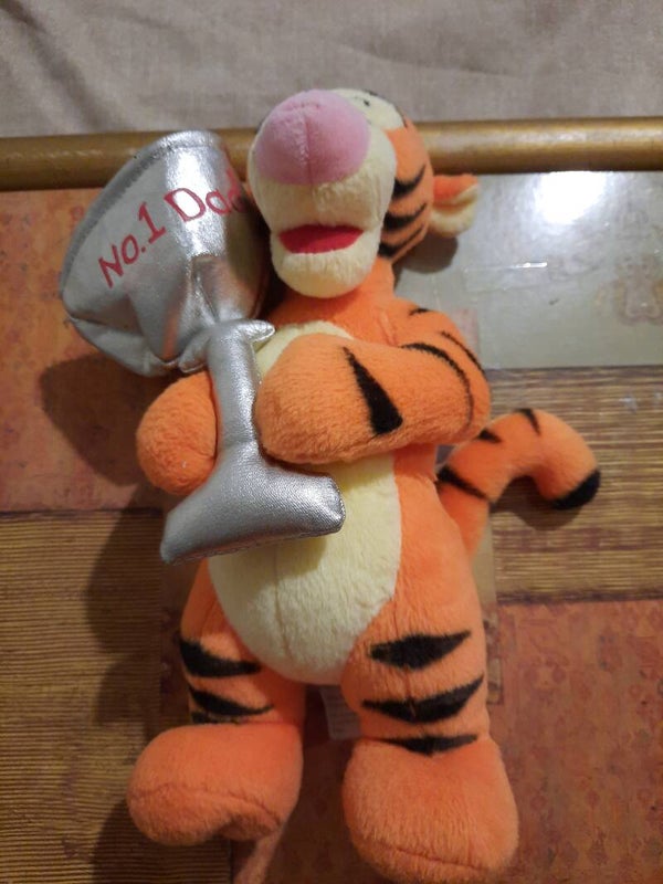 Very cute plush of Tigger just for dad !!! Great for a prezzy . Also great addition to your collection or the beginning of one!!! Have a look at the pictures and then take it home!!!🙂🙂🙂🙂🙂