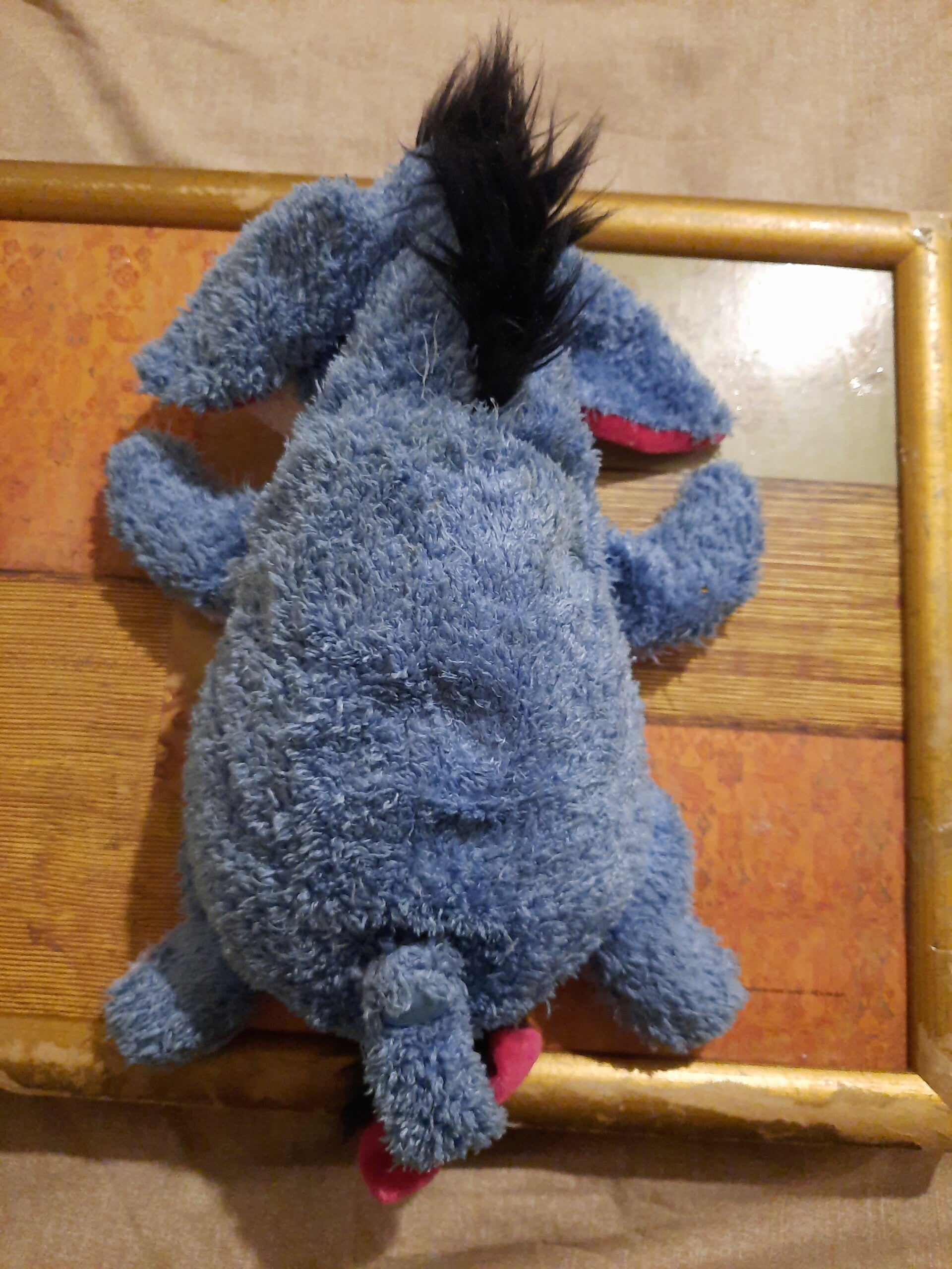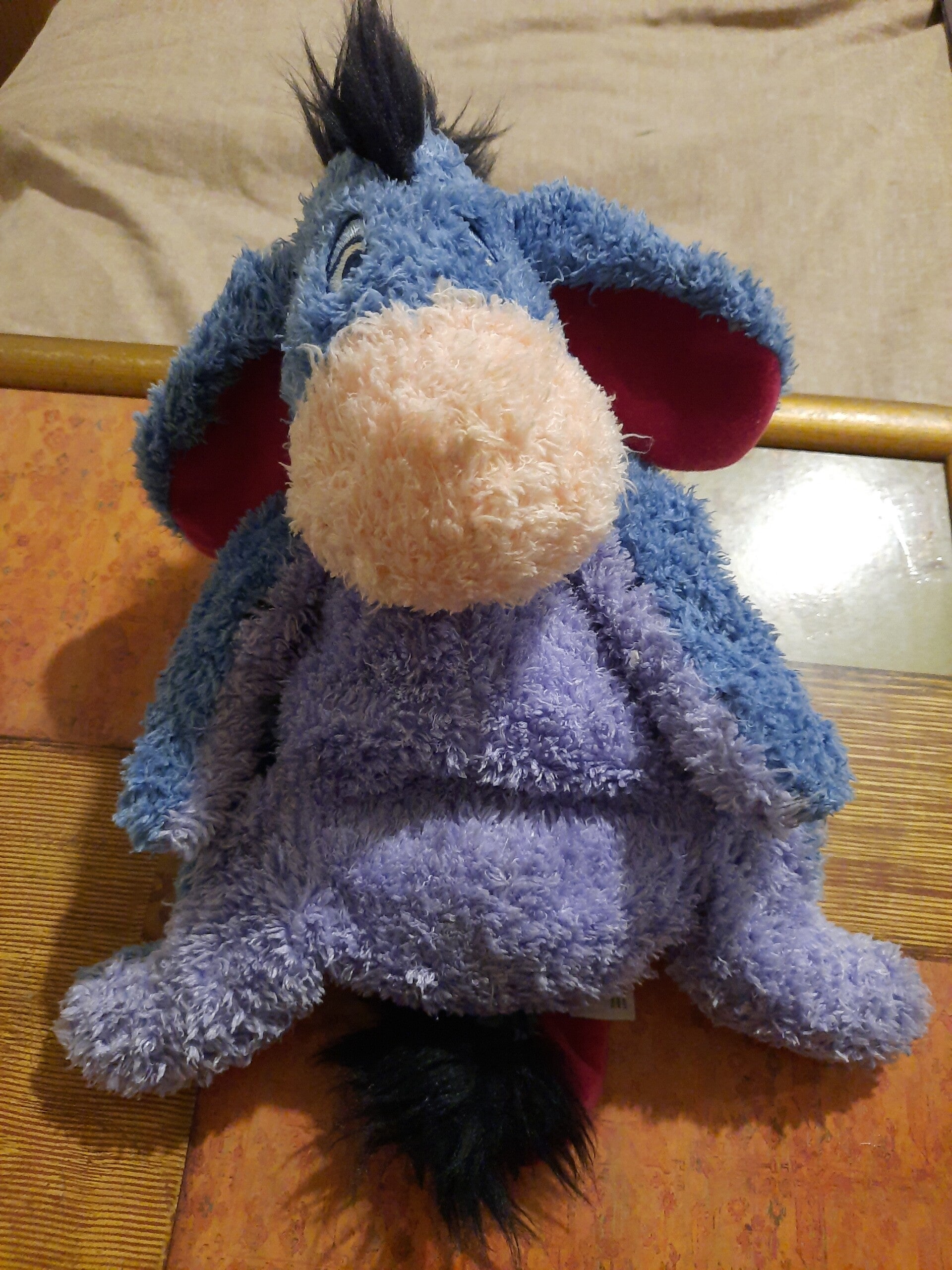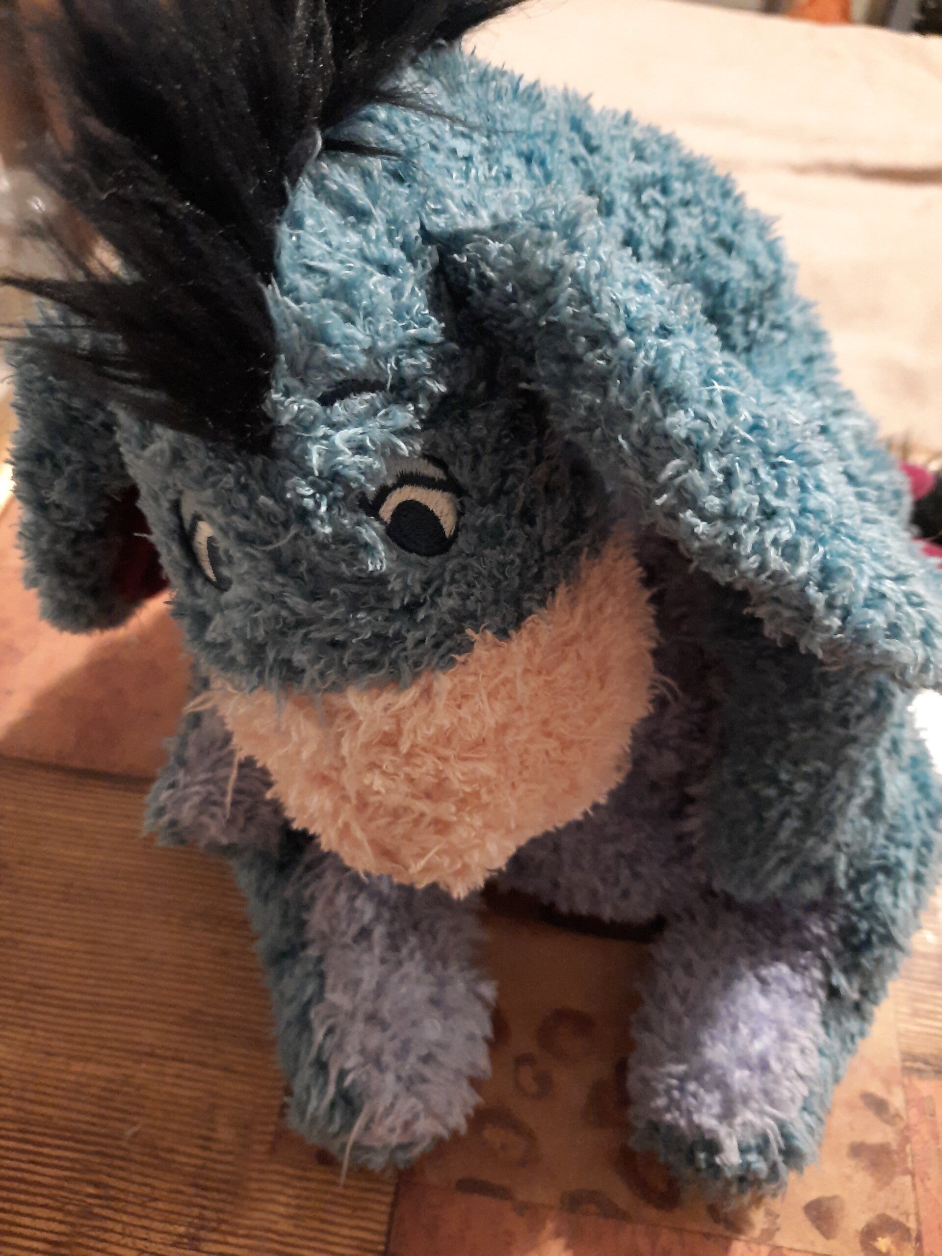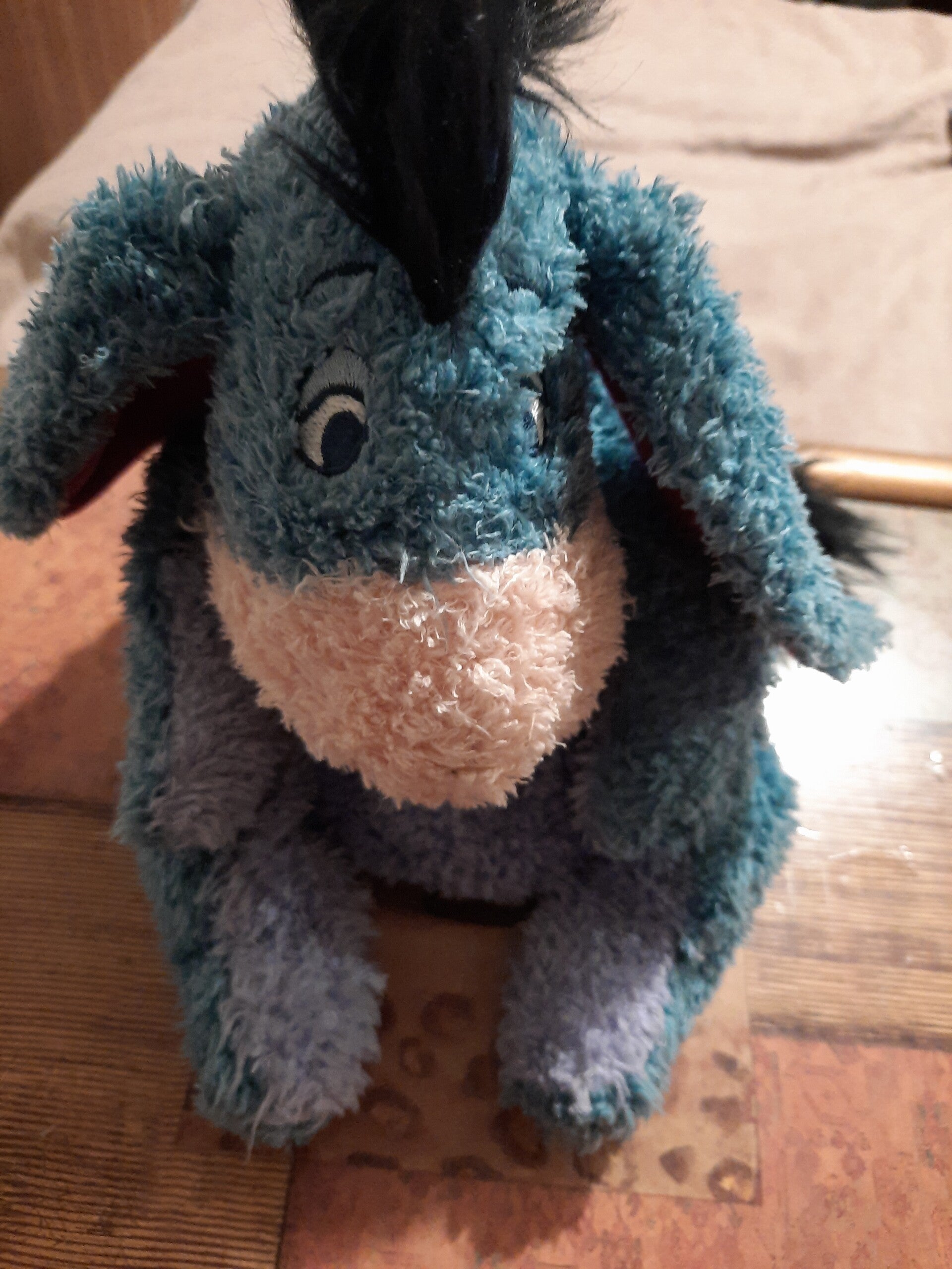 Very cute and very cuddly medium sized Eeyore . He is a plush with beaded arms and legs and a velcro detachable tail with safety cord . Sooo very cute . Have a look at the pictures and then take it home!!!🙂🙂🙂🙂🙂
