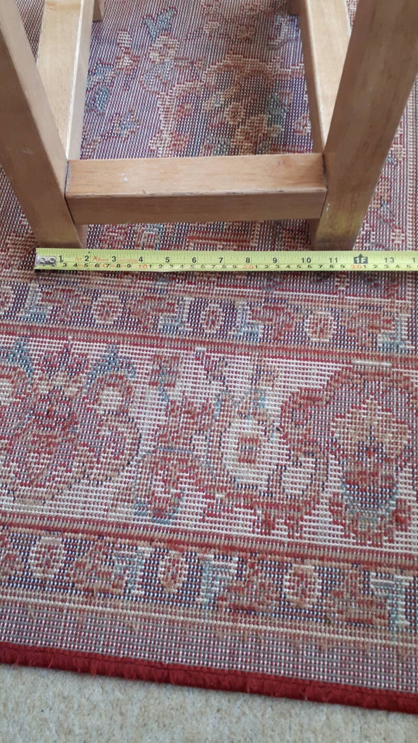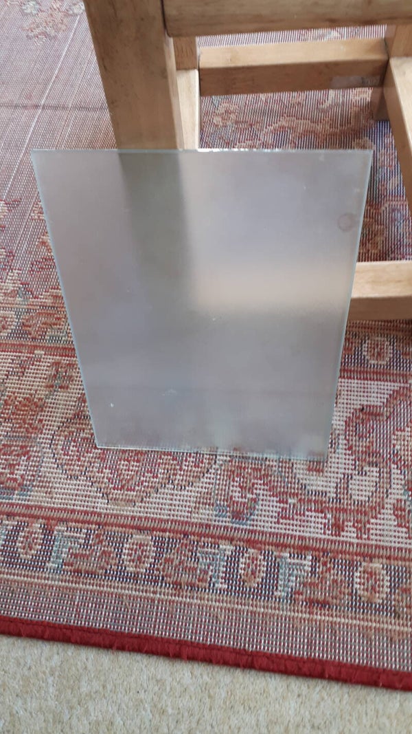 Super table in used condition. In my opinion needs a light sanding and a coat of varnish to bring back to it former glory. Some of the stickers the frosted glass sits on are broken but the others hold it perfectly. See photos to make your own assessment of condition.