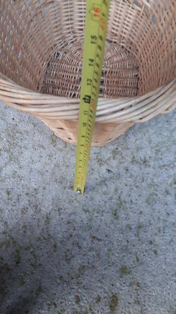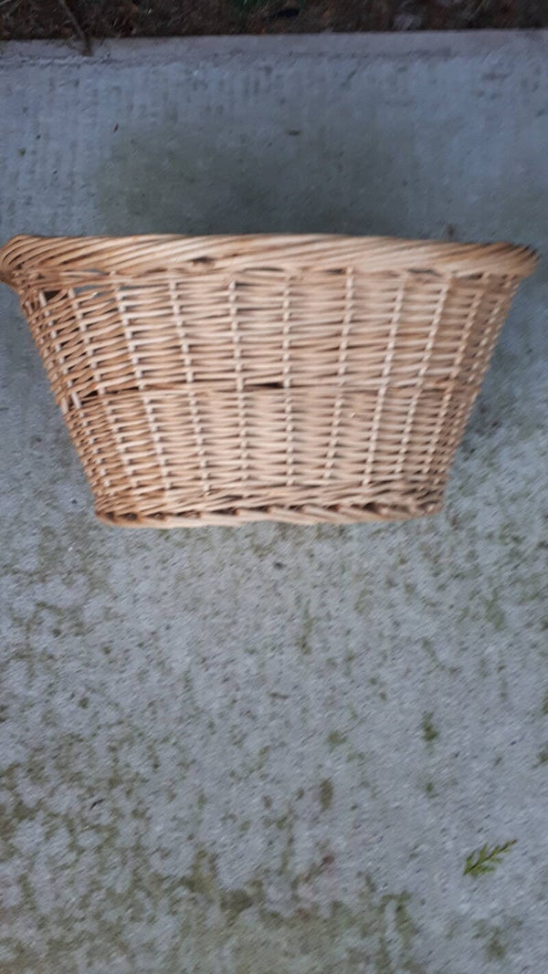Super wicker basket with two hand carry gaps. In used condition with some minor breaks in the wicker. See photos to make your own assessment of condition.