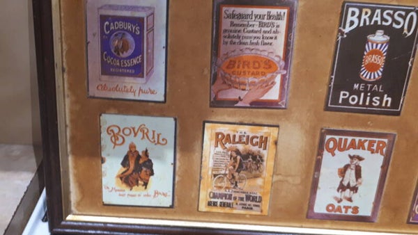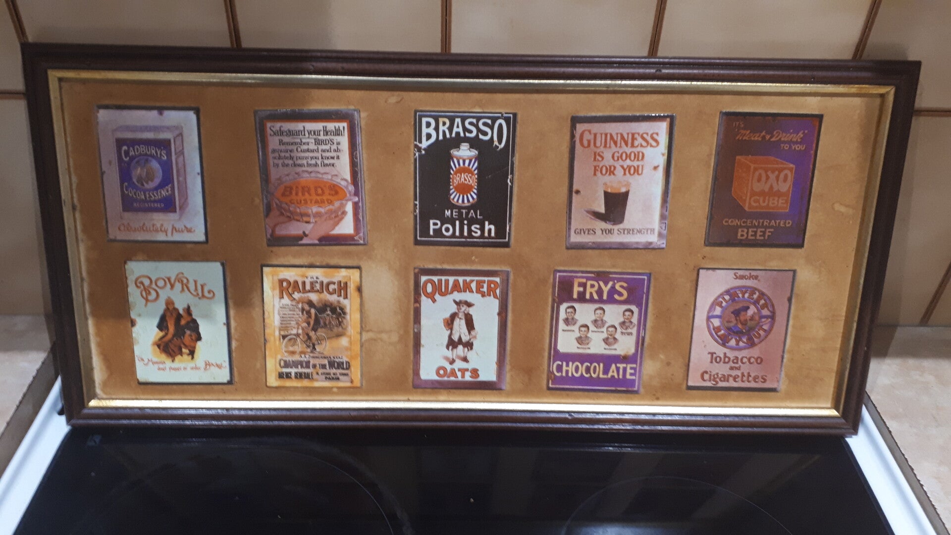 Super well known retro advertising sign in used condition with some wear on the frame and tin signs given that shabby chic appearance.
