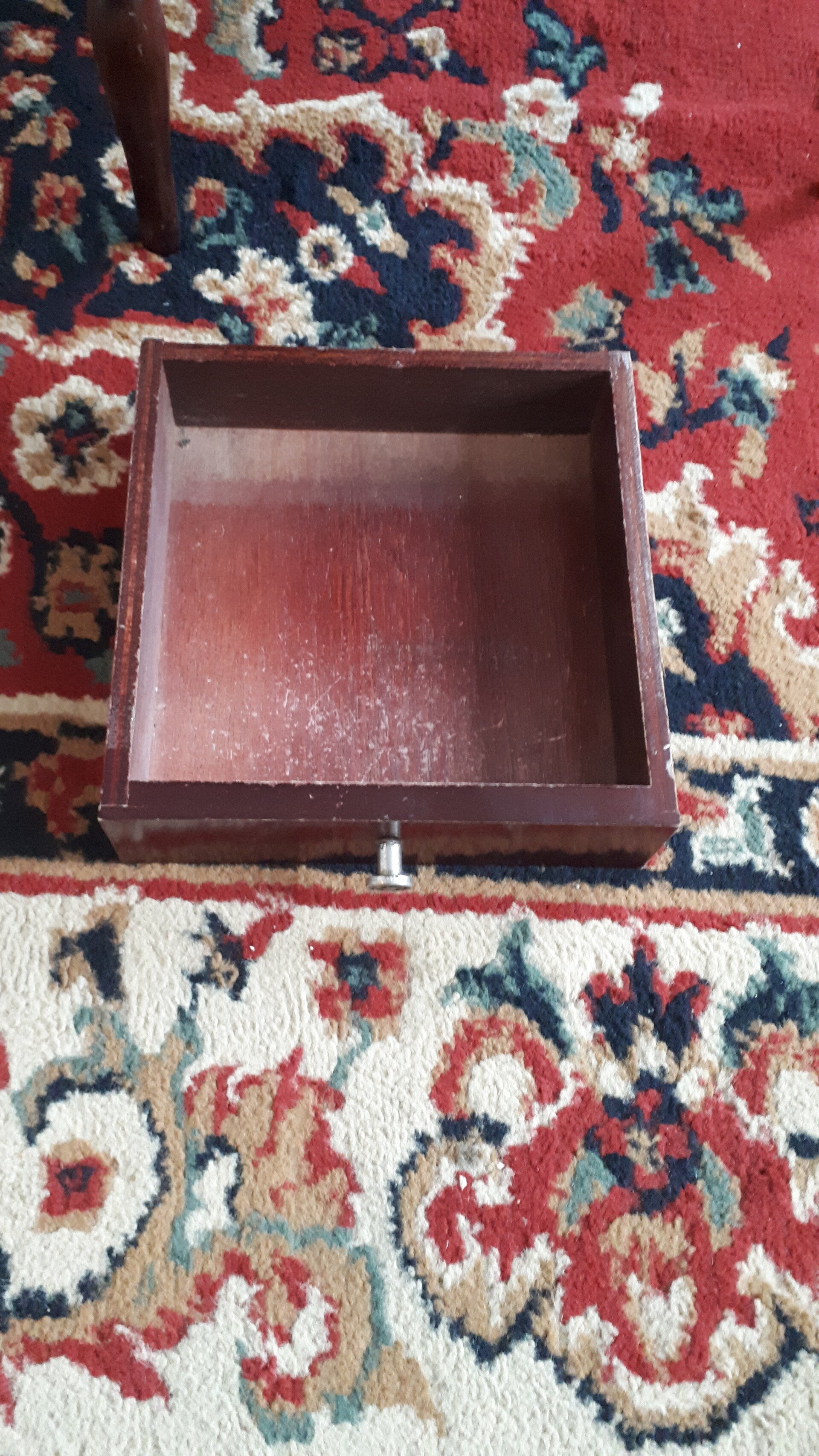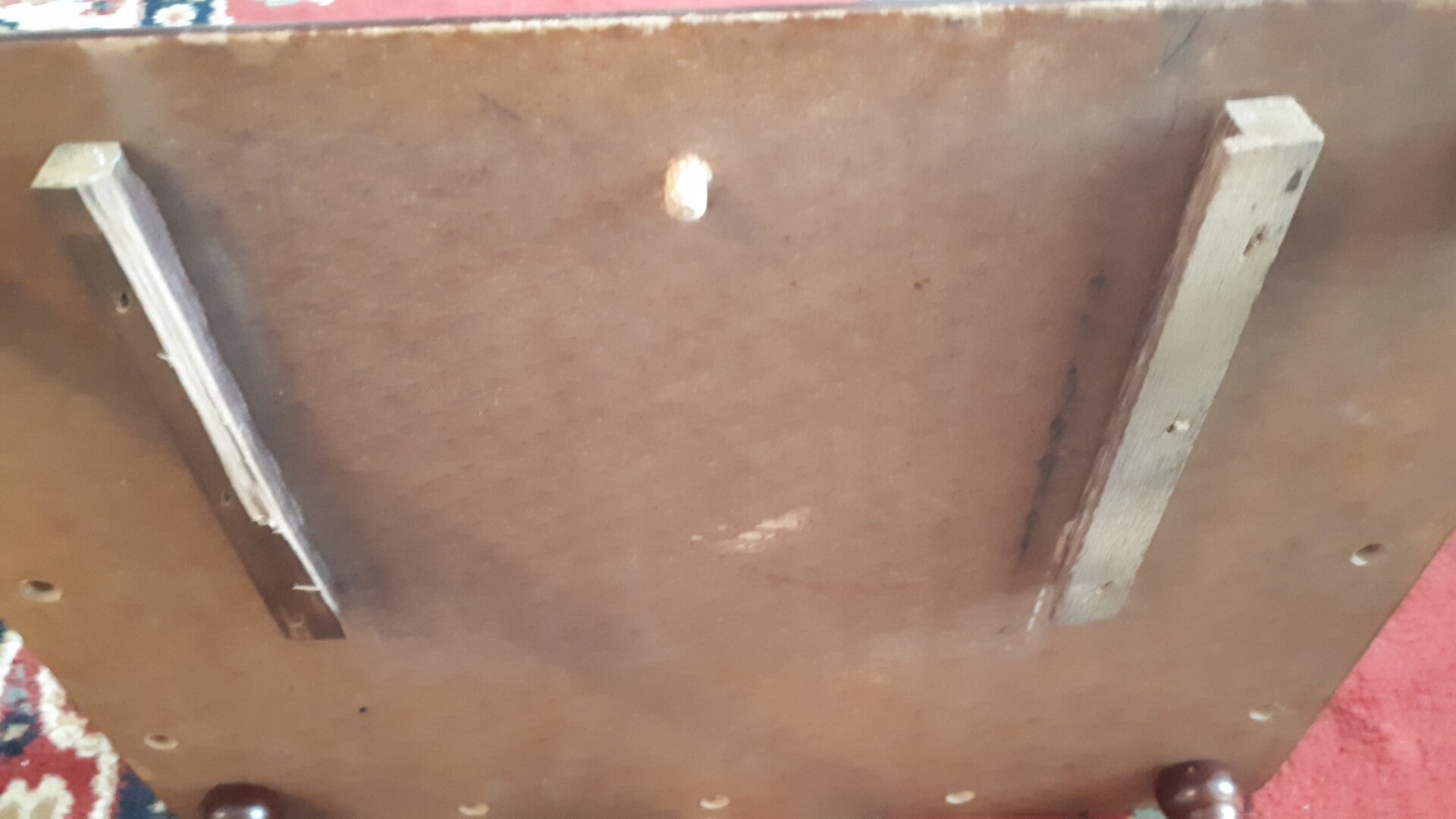 Very attracive item in my opinion needs a little upcycling with a coat of varnish . In used condition with some chipping of wood and draw does fit in its alocated slot but does not run smoothly, as the wooden side runners have splits of wood missing. See photos to make your own assessment of condition.