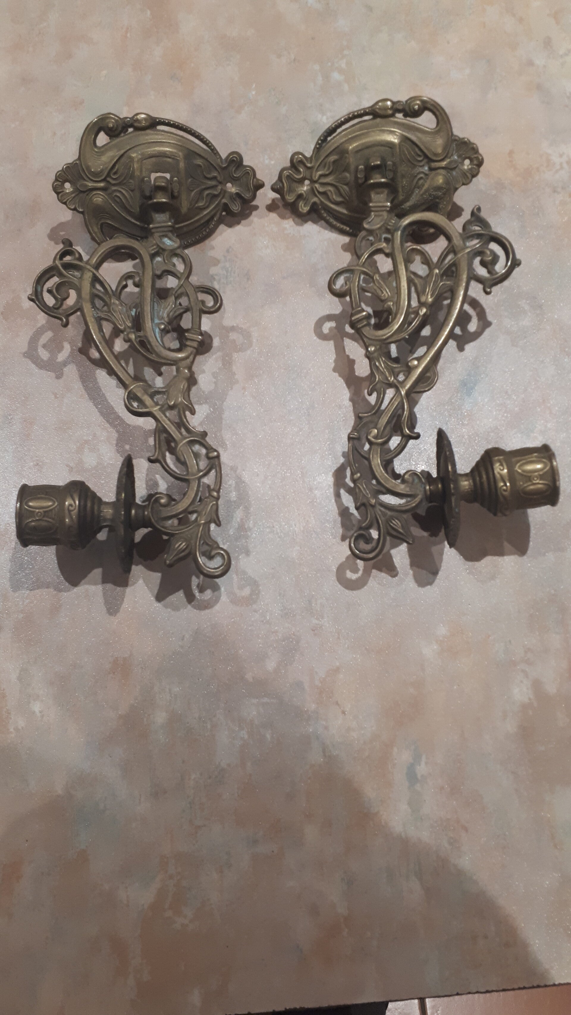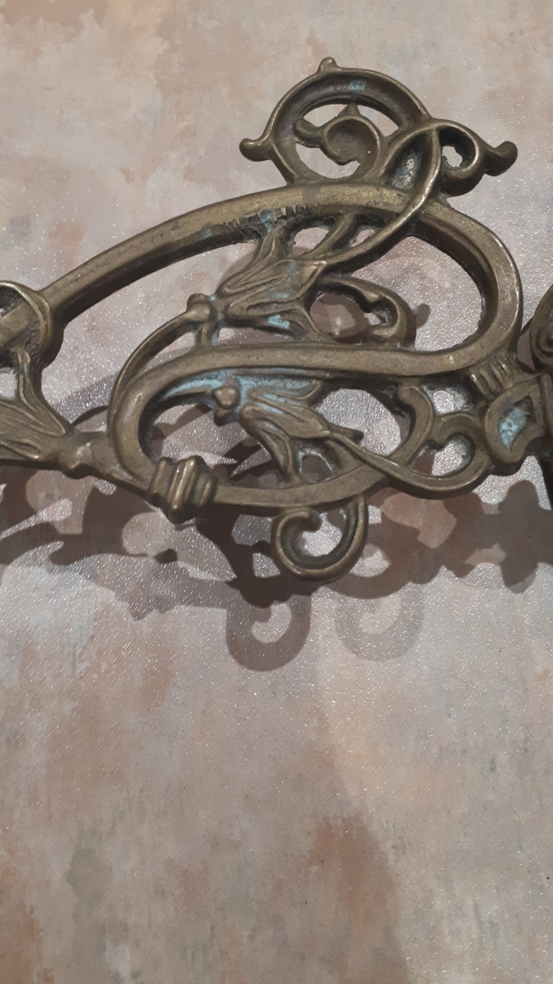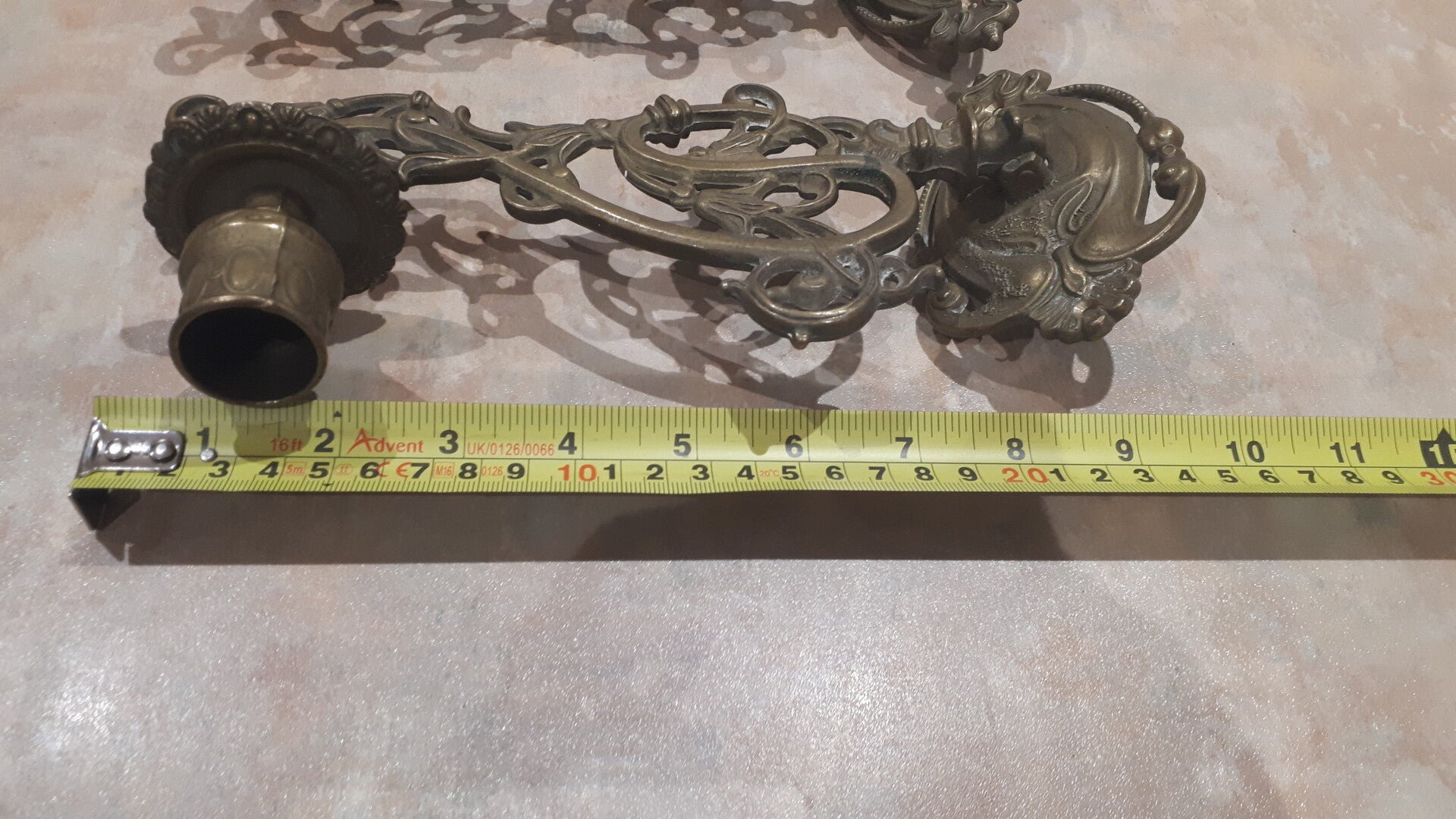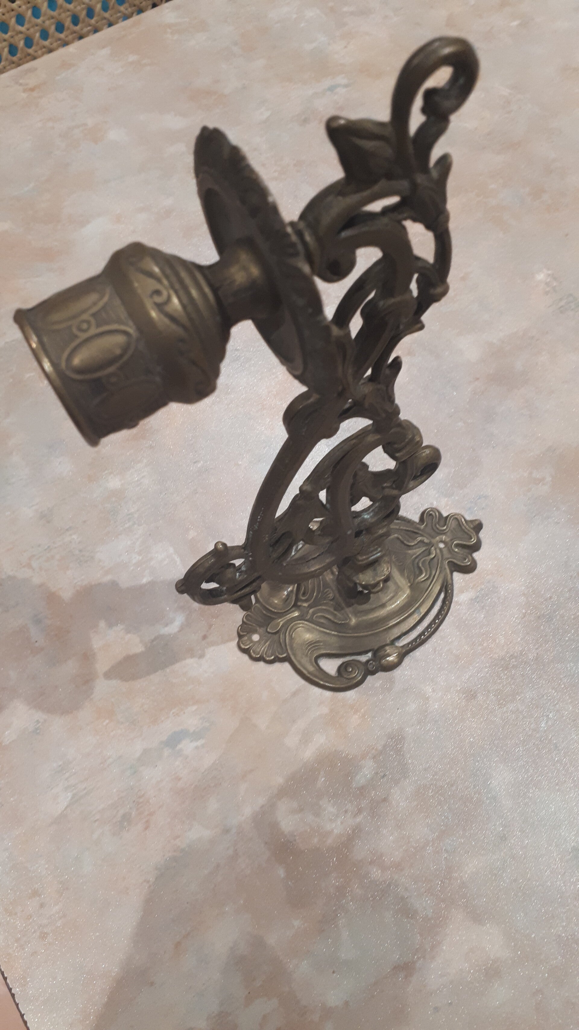 Add some added granduer to your home. In good used condition with some minor brass oxidation this in my opinion adds to its character. Has screw holes to attach to the wall, does Not come with screws. See photos to make your own assessment of condition.