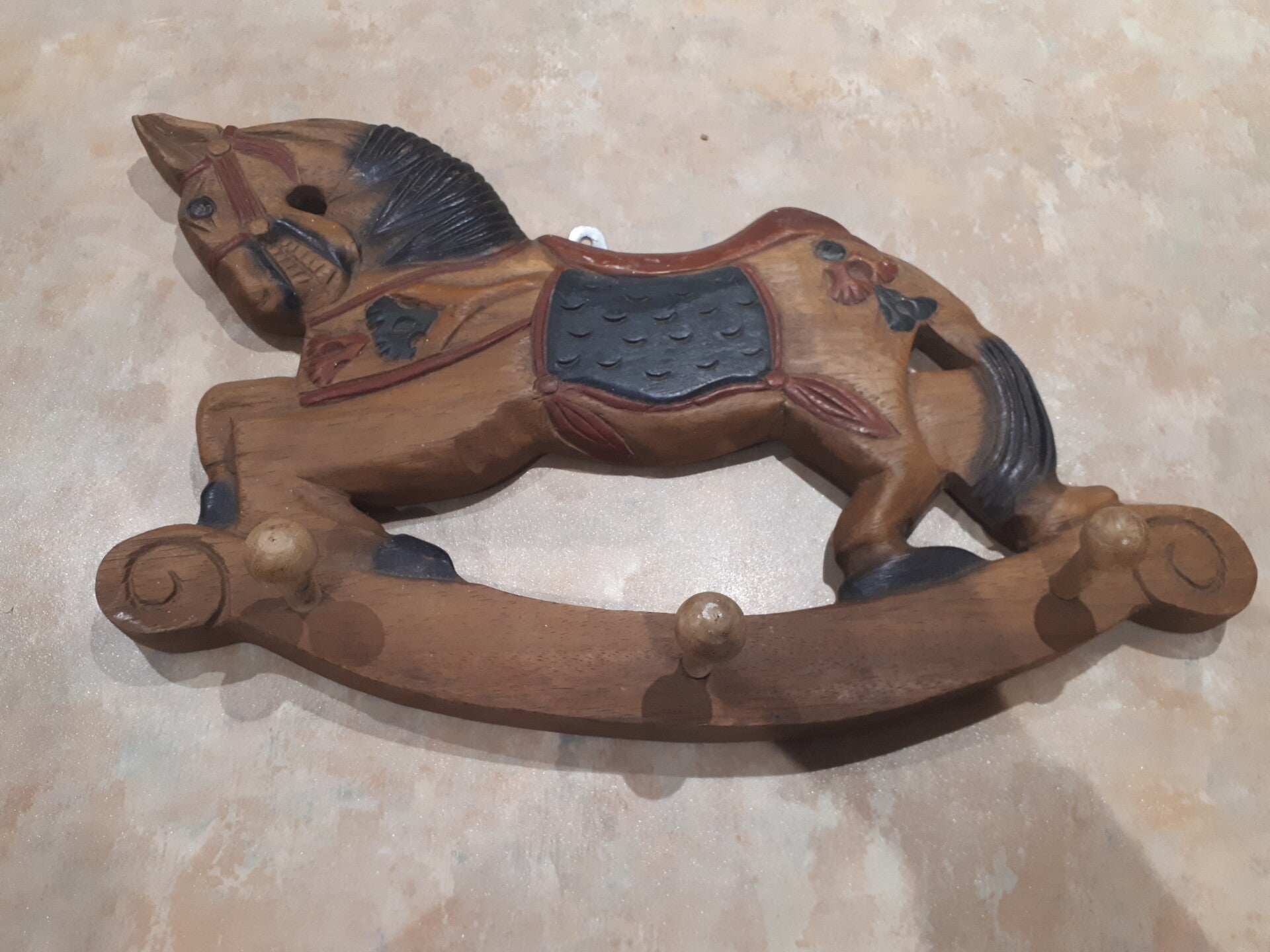 Stunning Vintage Hand Carved Wooden Shaped Rocking Horse Coat Hanger. UK POSTAGE ONLY
