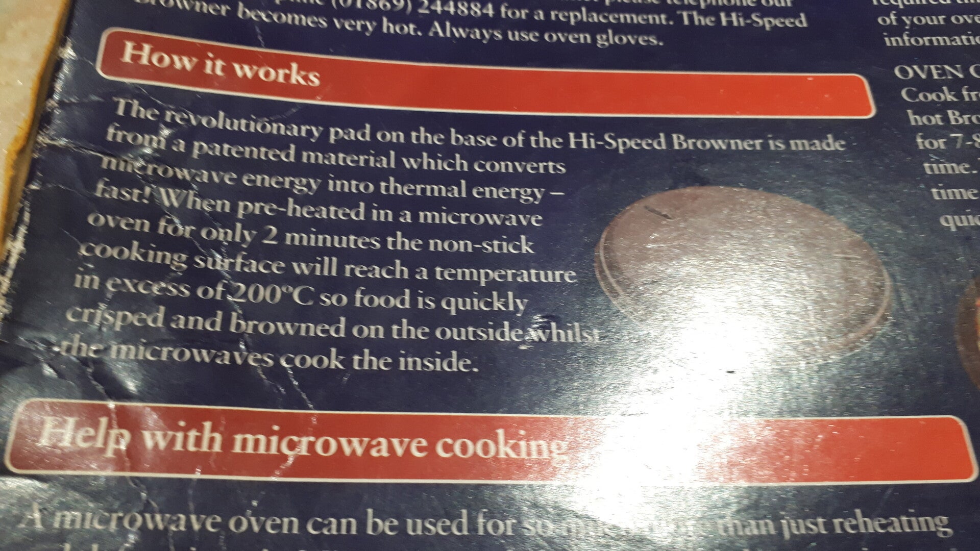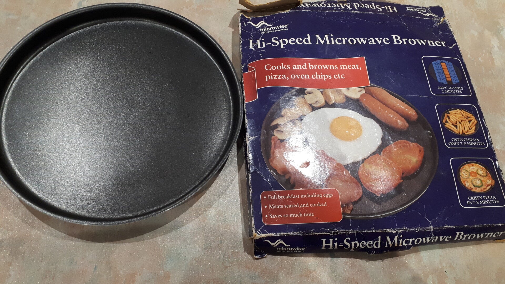 - This plate converts microwave energy into thermal energy to cook your food. See further information on box. New Browning plate but damaged box from shelf life. See photos to make your own assessment of condition.