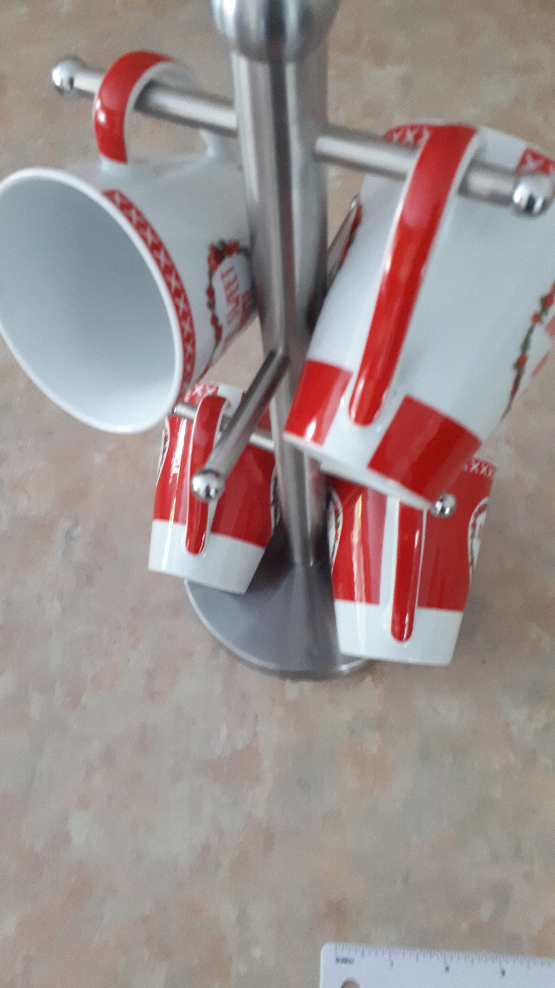 - In good used condition with some minor marks/dings from use and age, in my opinion hardly worth mentioning but i am obliged to. Cups only used a few times in very good used condition . I believe the tree is made of stainless steel but not 100% sure. See photos to make your own assessment of condition.
