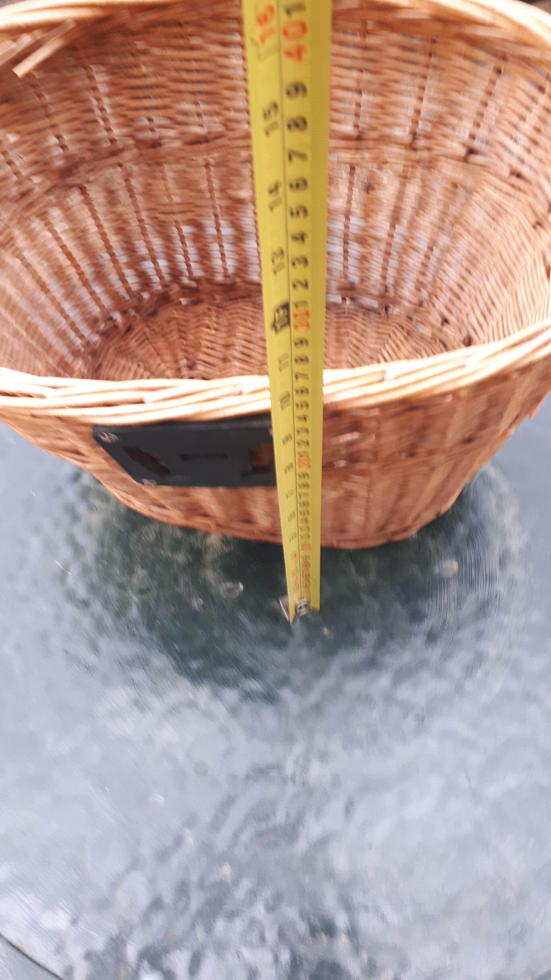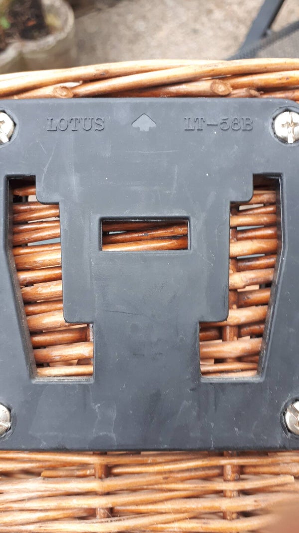 - Nice basket with minor wear to wicker from age and use. Does have plastic attachments i believe these are for bikes but not sure. These can be unscrewed if not wanted. See photos to make your own assessment of condition.