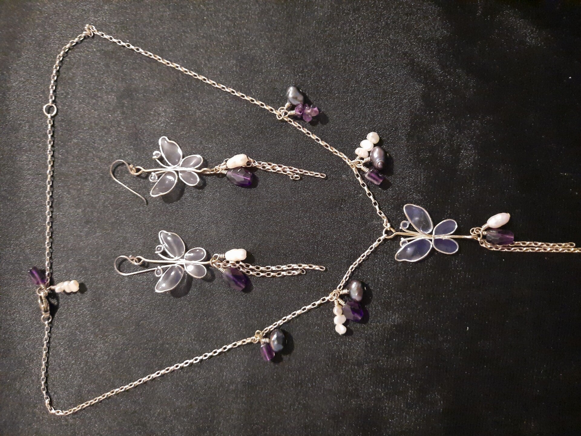 Butterfly Necklace And Earrings Set Stamped 925##