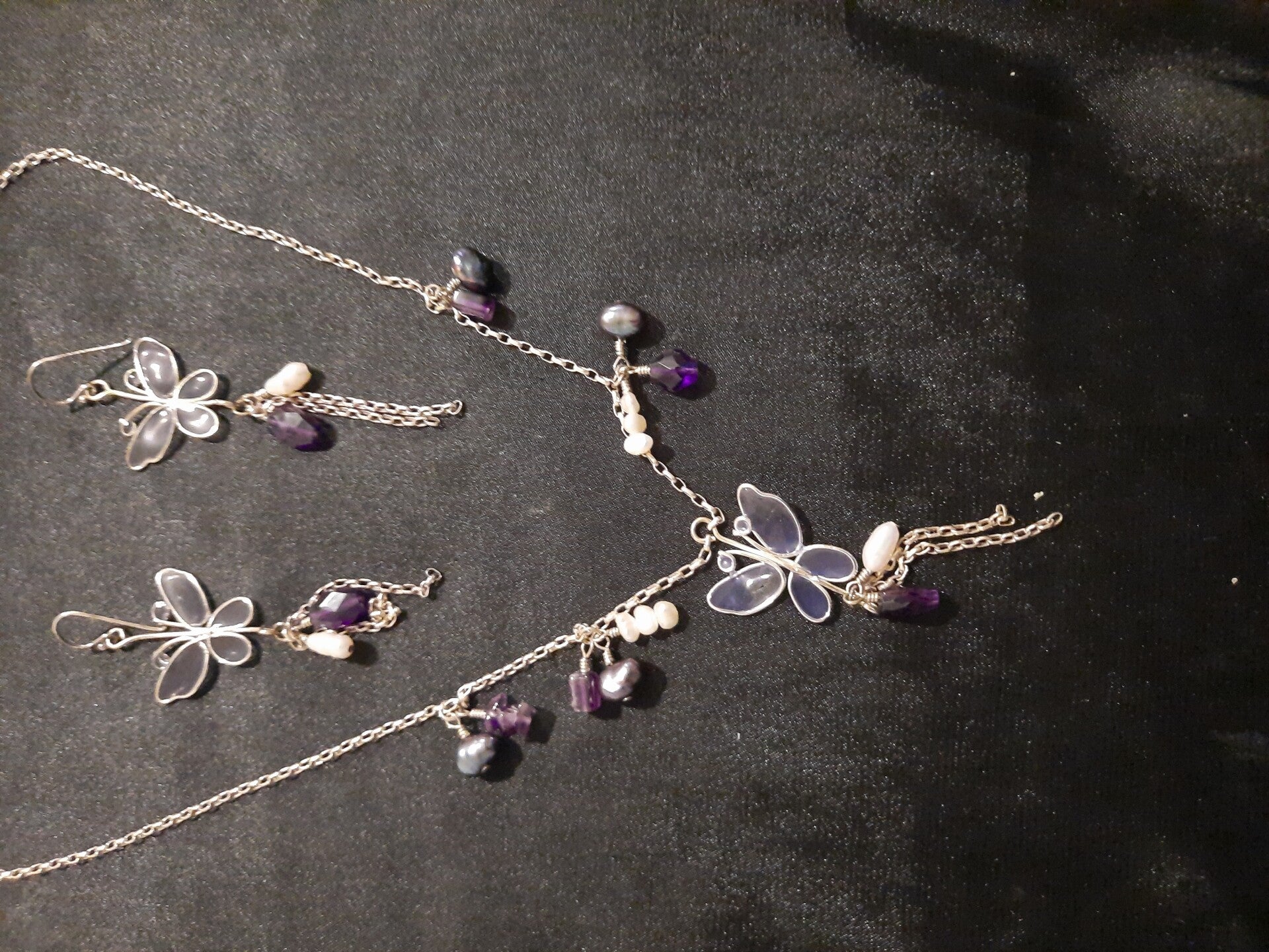 Very Beautiful set , colourful and light , shines bright in light and just beautiful. It is used and in very good condition, very colourful. Have a look at the pictures below and then take it home!!!🙂🙂🙂🙂🙂 UK POSTAGE ONLY!!!