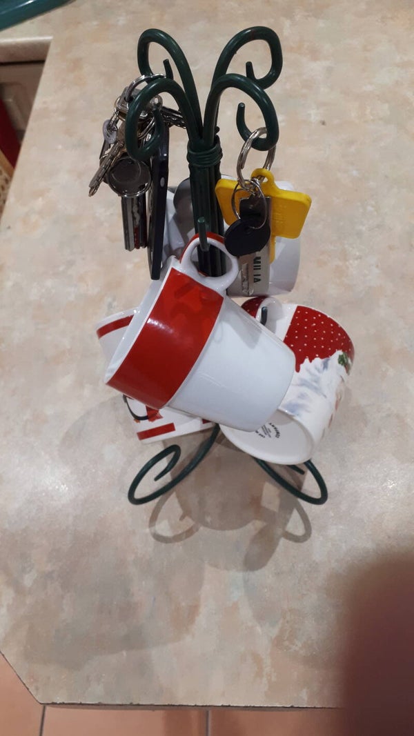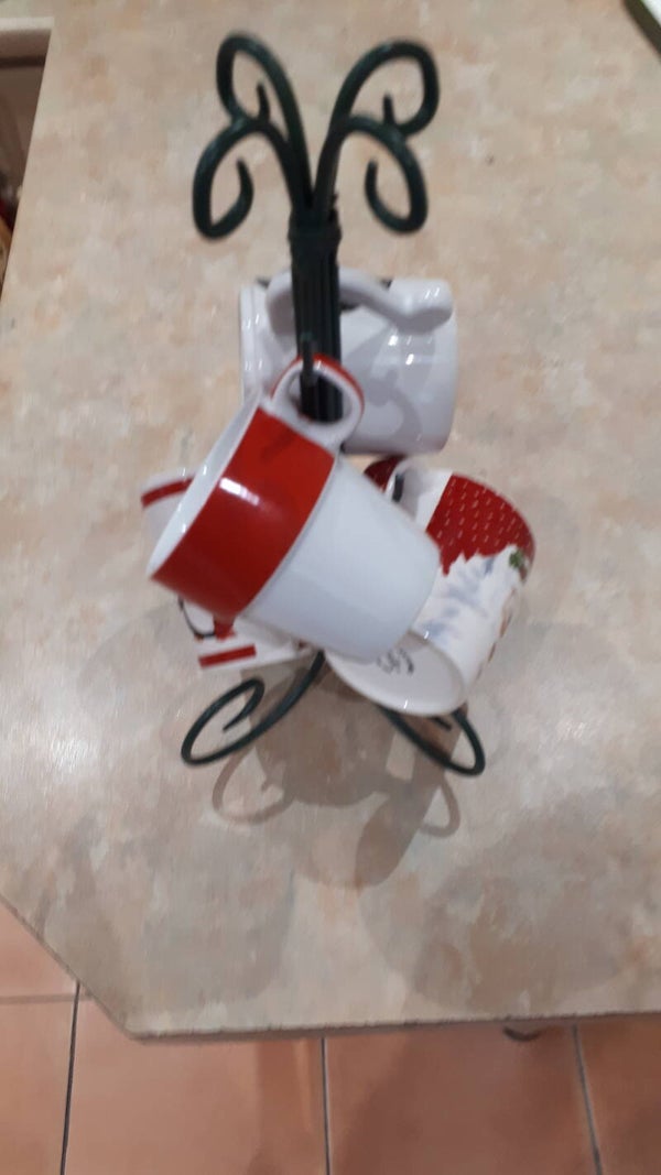 Strong and sturdy metal 4 cup / mug holder in good used condition see photos for your assessment of condition.