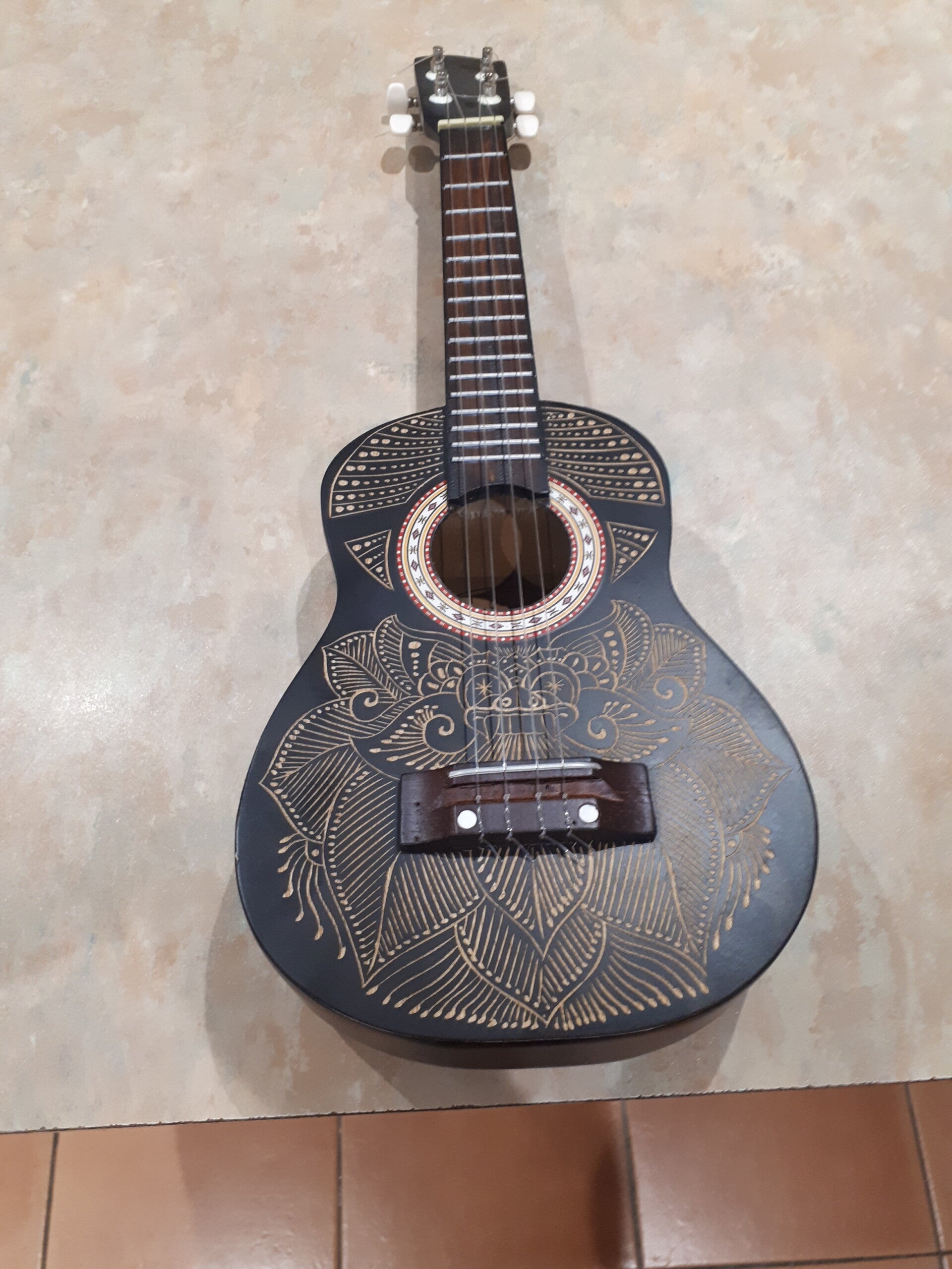 SOLD SOLD4 String Ukulele With Ornate Design. Collection only Caerleon nr Newport Gwent
